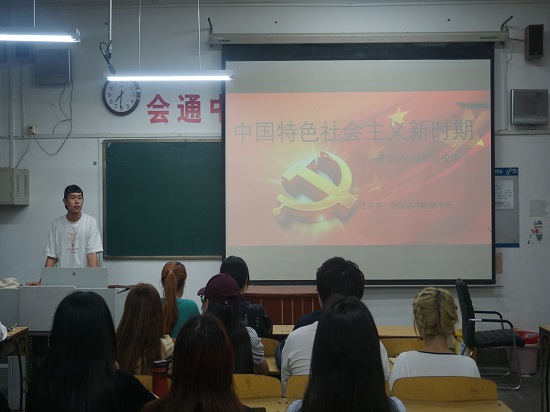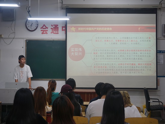 本次活动围绕党史学习教育展开,讲解内容包括新时代中国共产党的历史使命、新时代中国特色社会主义思想和基本方略、新时代党和国家事业的历史性成就三个方面。为加深同学们对国情党情的理解,张广玉清晰罗列了十四条基本方略并配以详细的文字解释。同时,张广玉由小切入,由浅及深,将时代楷模王传喜开拓强村富民新道路作为一个典型事例,生动展示了中国共产党员“与人民同呼吸、共命运、心连心”的人民至上情怀理念。通过讲解党和国家事业在政治、经济、国防、外交等方面取得的历史性成就,进一步激发了同学们的爱国爱党热情和民族自豪感。同学们将关键内容整理成笔记,并进行交流展示。讲解结束后,张广玉为同学放映《觉醒年代》,剧中再现了陈独秀发表独特先进救国观点,掀起一轮新思想风潮的历史。同学们聚精会神,沉浸在一幕幕洋溢青春热血的画面之中,对中国共产党的伟大事业有了更深层次的理解。