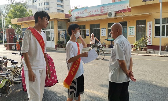 强调完注意事项之后,服务队成员便前往明德公寓小区进行走访活动。通过采访,队员们了解到家乡在交通、住房、医疗、教育等诸多方面都发生了翻天覆地的变化。调查过程中队员们有幸采访到了一位党龄66年的老党员,这位老党员为队员们讲述了这几十年来他所切身实地感受到的社会生活变化。他说,现在的社区已经不同于以前了,不仅经济发展上来了,环境也改善了不少,同时还见证了党的不断发展进步,对人民的服务也越来越好了,人民都真正幸福起来了。这不禁使队员们感叹城镇化发展的成效显著,人民都过上了好日子。本次采访,社区百姓们都主动配合服务队的采访工作,积极向队员们分享自己生活的变化,同时队员们也深深地感受到了老百姓们的幸福感与满足感。