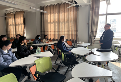 会后,在A208举行了莘州中学日语教师小型招聘会,2019级、2020级日语专业同学参加。王勤国书记代表莘县莘州中学向同学们介绍了公司建校以来日语教研的发展,同学们认真倾听,积极互动,有意向签约的同学与王书记互留了联系方式。
