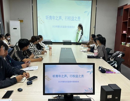 为切实保障2023级新同学们的权益,解决新生入学以来在各方面遇到的问题,2023年9月27日,mk体育权益部在公司C201面向2023级各班负责人,举办“听青年之声,行权益之责——2023年新生权益面对面座谈会”。