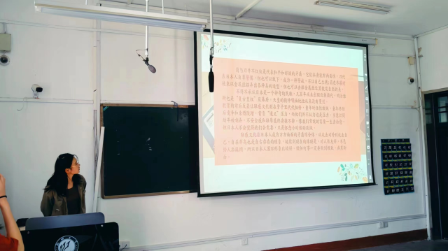 参加本次读书分享会的四组同学分别选择了《日本民间故事大全》、川端康成的《伊豆舞女》、夏目漱石的《草枕》、鲁思·本尼迪克特的《菊与刀》,通过对作者的介绍、创作背景的阐述、剧情的概括和读书感悟四个方面,对这四本书进行了深层的剖析。所有小组分享完后,四位评委对每组的展示进行了点评,并在主题内容、仪表仪态、语言表达、多媒体制作、小组配合五个方面提出了建设性意见。最后,金玉兰老师和翟林霞老师做了简短的总结。