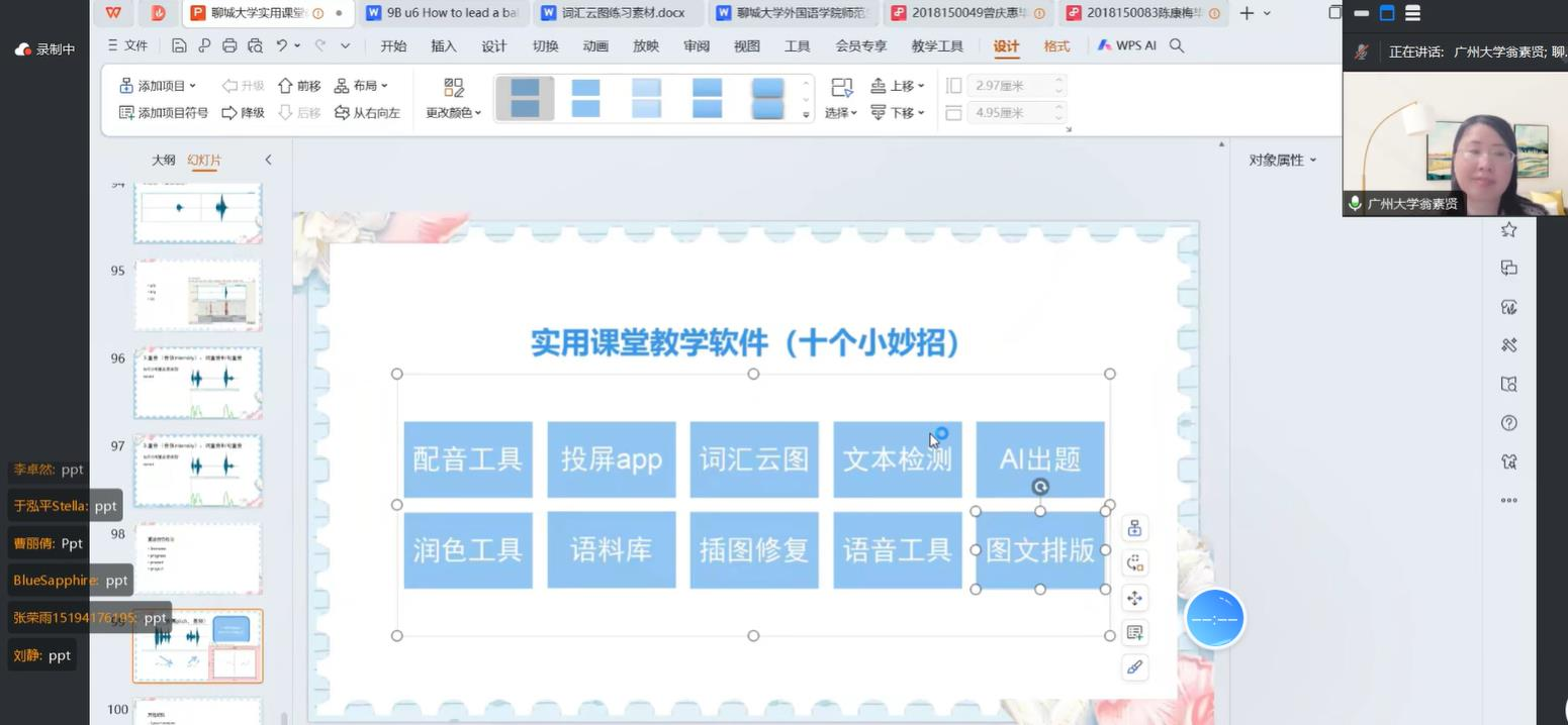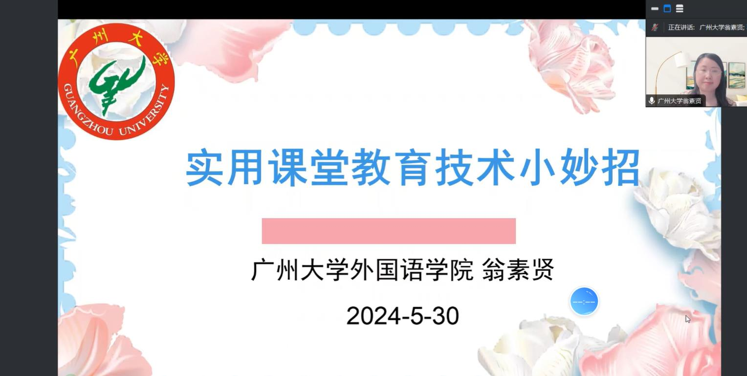 为了提高公司英语专业实习生公司产品技术水平和课堂教学能力,进一步提升师范生培养质量,6月2日晚,mk体育特邀广州大学mk体育英语师范教研室主任翁素贤老师于线上开展《实用课堂教育技术小妙招》讲座。本次讲座由公司实习指导老师候静主持,英语系部分教师、mk体育2021级英语系全体实习生参加。