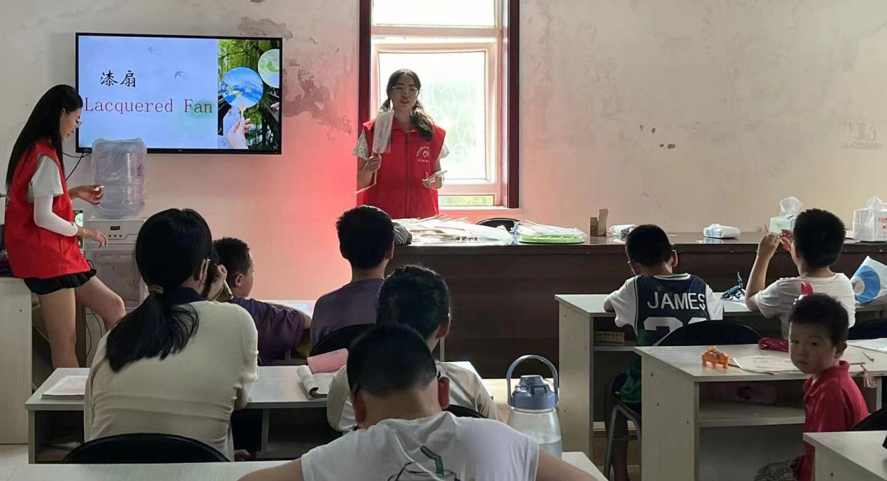 活动伊始,志愿者根据小朋友的不同情况,结合自身特长,为其提供了个性化的作业辅导。同时,志愿者通过中英双语讲解PPT,并结合图片、文字,向小朋友介绍关于传统漆扇的文化历史和制作方法。在提问环节,小朋友积极举手、竞相抢答,现场气氛十分活跃。此外,在实践环节中,志愿者指导小朋友制作漆扇,并在制作过程中启发小朋友发挥创意和想象力,打破常规,大胆实践,让他们深入体验中华优秀传统文化的深邃内涵。活动最后,志愿者和小朋友共同完成了漆扇作品并拍照留念,记录下了这段美好的回忆。