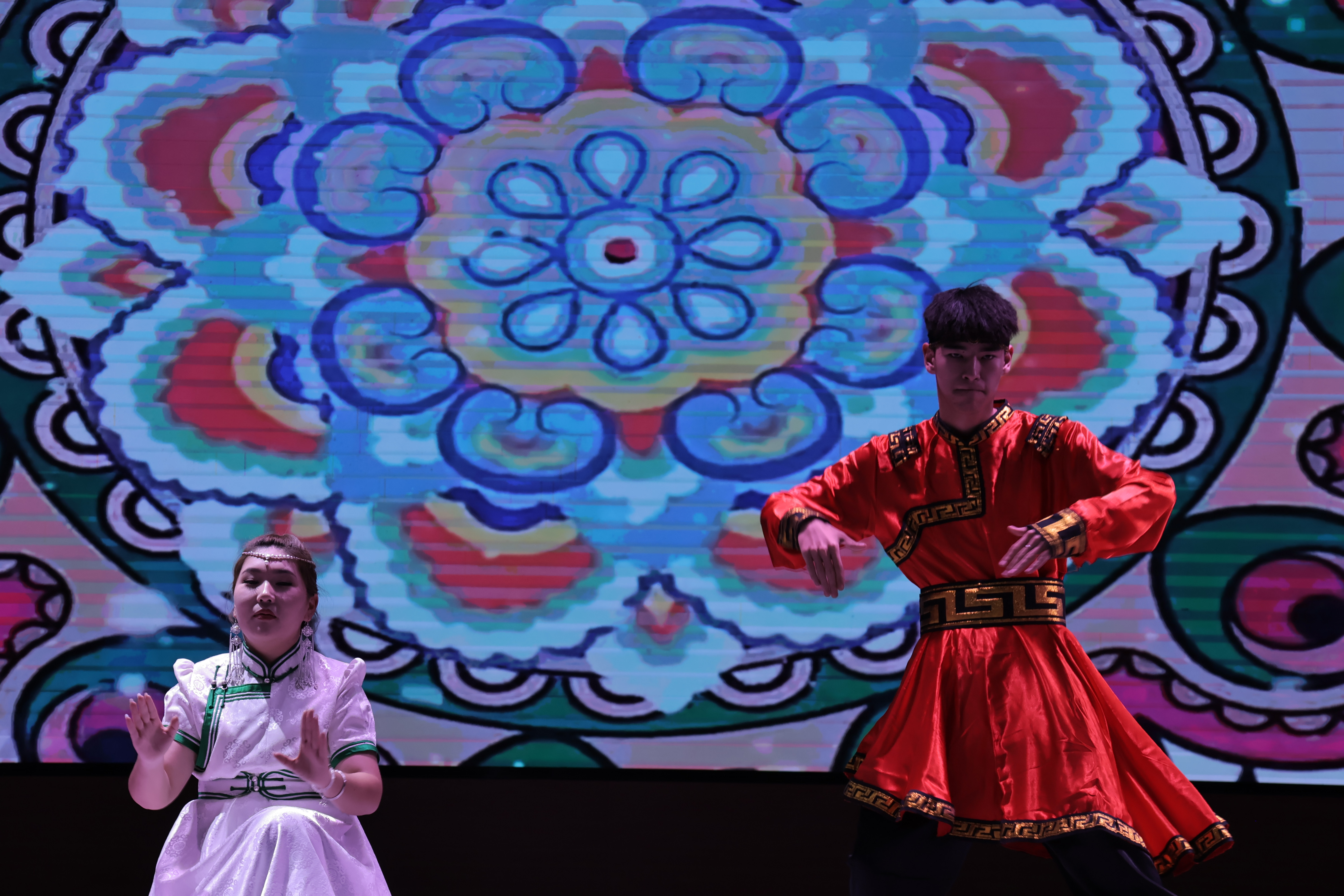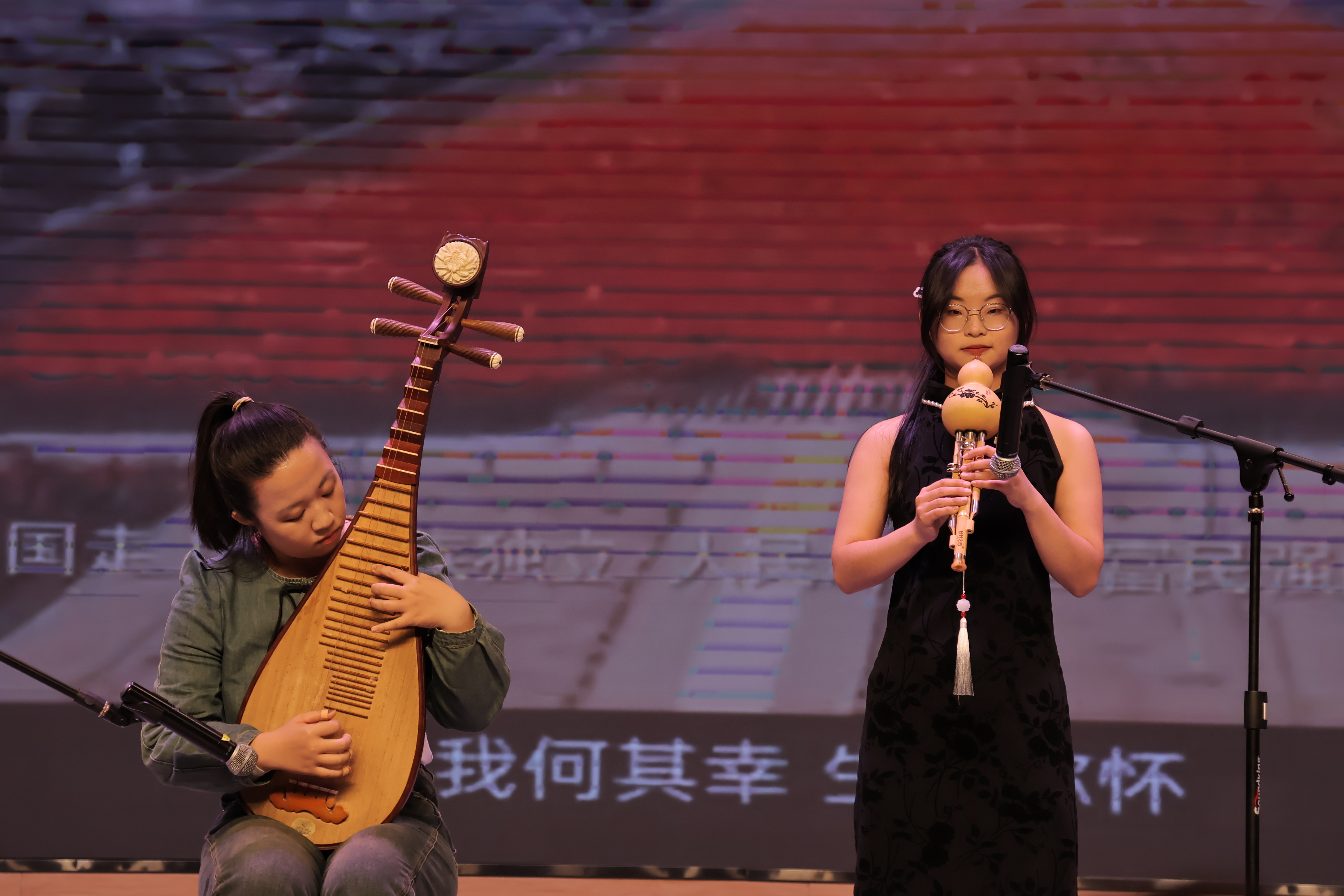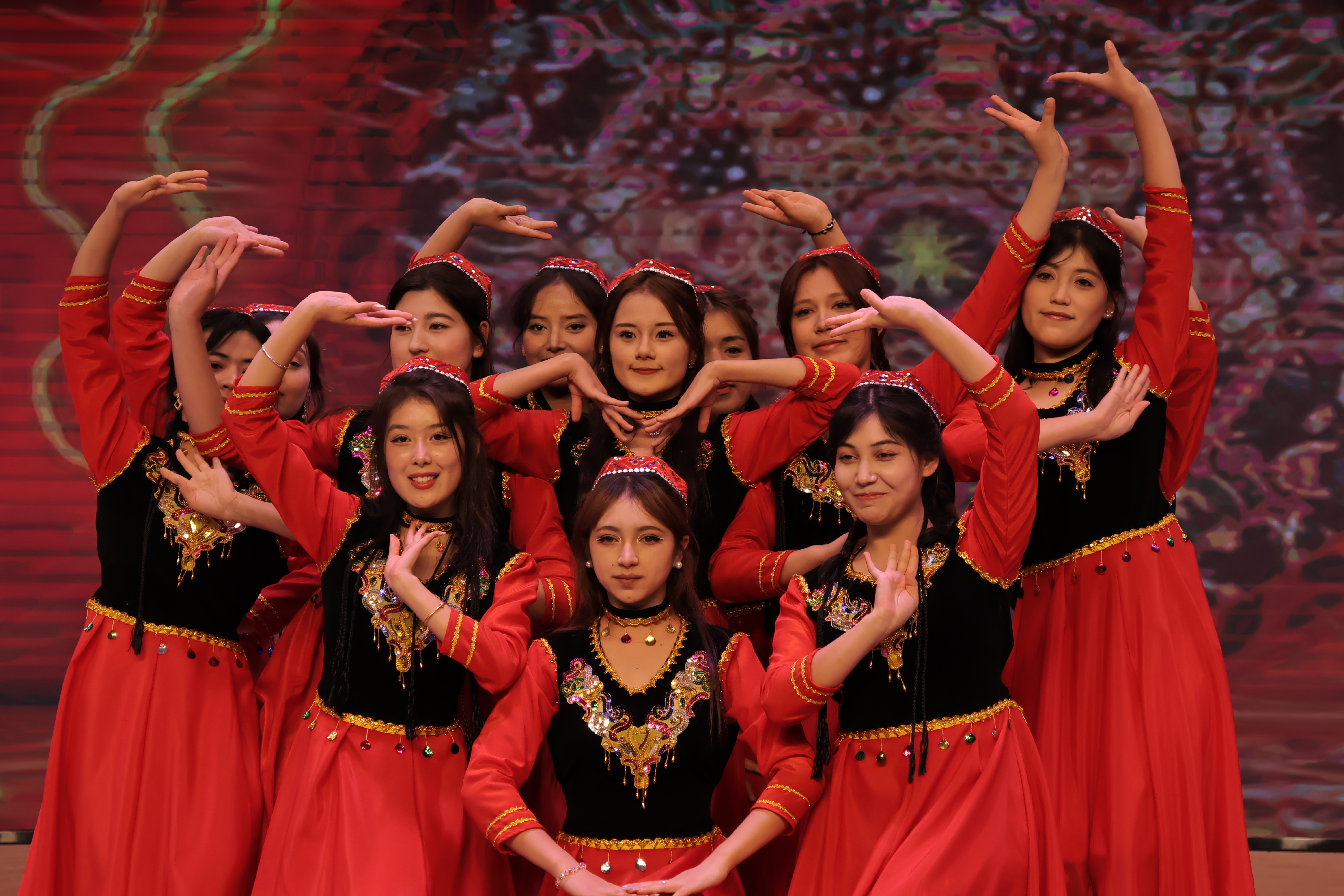 新疆少数民族特色舞蹈,欢快热情,呈现出独特的异域风情;传统乐器演奏《万疆》为现场增添了典雅之韵。最后,汉语国际教育专业22级全体师生演唱京歌《我是中国人》,歌声嘹亮、充满激情,每一个音符都饱含着对祖国的热爱和身为中国人的自豪,让在场观众热血沸腾。至此,次活动圆满结束。