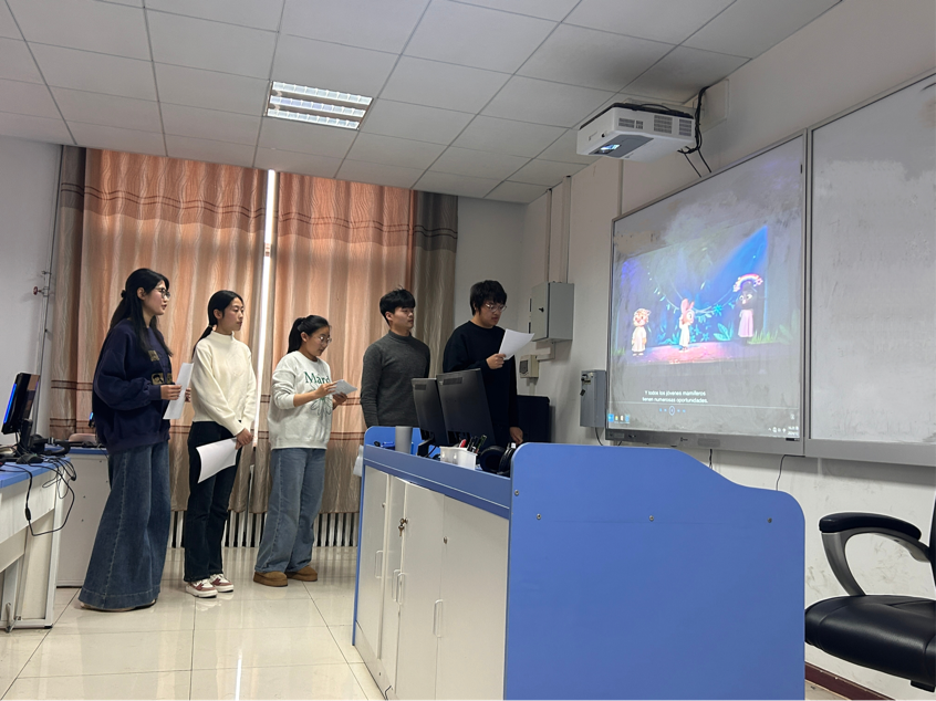 为提高公司西语系员工口语表达能力及现场演讲能力,增强团队凝聚力与协作能力,丰富校园文化生活,展现老员工朝气蓬勃积极向上的精神状态。mk体育西班牙语系系于2024年12月9日在mk体育举行了西语配音比赛,五名教师担任评委,刘锦瑞担任主讲人。西班牙语系的各位同学积极参加。