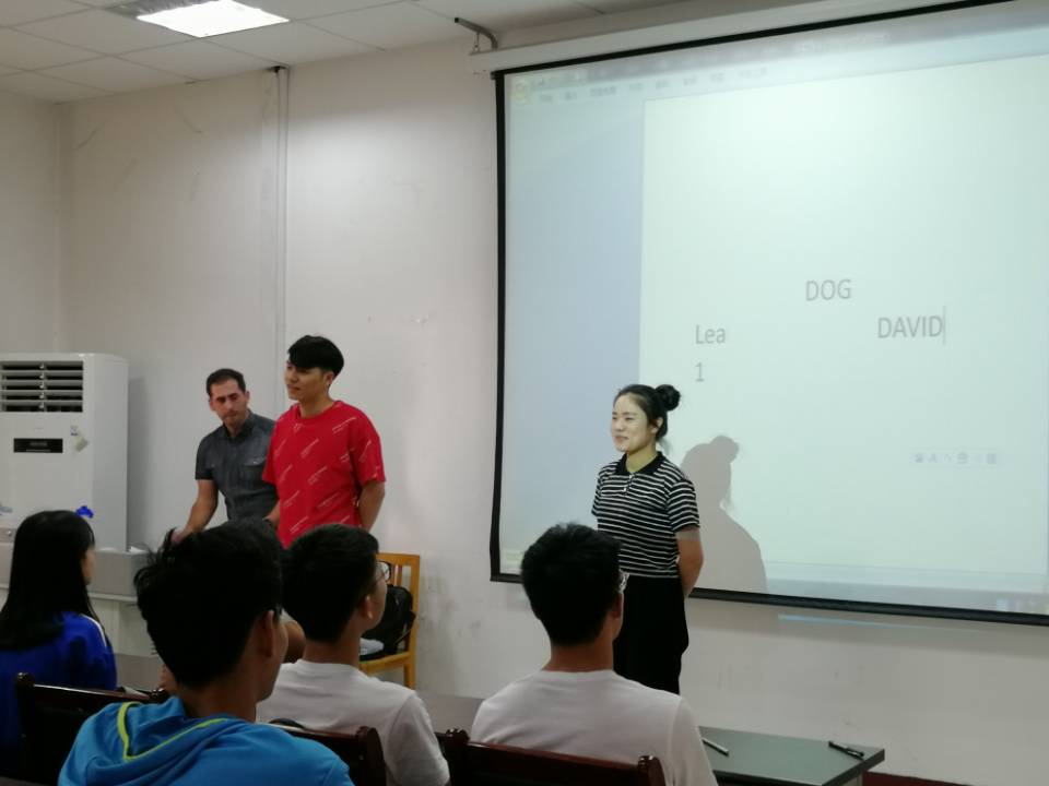 本次培训班主要从两个方面展开:游戏互动与提问环节。本着以员工交流为主的观点,外教Benjamin Wood首先就自己的生活经历进行了简单的自我介绍,拉进了与同学之间的距离。在随后的游戏互动环节中,外教要求员工在纸上分别写下一个名词与一个形容词并随机抽取两名员工和几张纸条,与同学进行“你演我猜”小活动。在小活动期间,台下的观众积极参与描述,每当说出正确答案,场内一片欢呼。游戏环节结束后,外教Benjamin Wood鼓励员工积极提问问题并进行详尽解答,包括如何联系口语、如何看待留学等问题。期间,外教邀请常锦河老师分享学习英语的经历,引起了同学的共鸣。