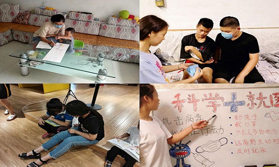 在社区人员的带领下,阳光教育志愿服务团队带着关爱和祝福前往留守儿童家中进行慰问。在走访慰问中,志愿者们同小朋友亲切交谈,为他们送上书籍、文具。每到一户,志愿者们还详细询问他们的家庭状况及需求。在了解到留守儿童的父母长期在外打工,且家庭条件有限,孩子们难以及时学习防控疫情的知识后,志愿者们向留守儿童详细讲授了如何科学地在疫情中保护自身安全:如不去人群密集的地方、出门一定要戴口罩、回家之后要勤洗手等等。志愿者们通过绘画板报、亲身示范,生动具体地将有关防疫的保护措施演示给小朋友们。活动结束后,志愿者们为每一位留守儿童送上一次性口罩和消毒湿巾,让他们学会保护自己,并用实际行动让留守儿童真切地感受到社会大家庭的温情关怀。