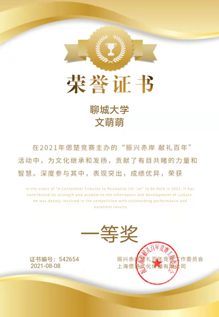 mk体育文萌萌荣获“振兴赤岸,献礼百年”知识竞赛的一等奖,优异成绩的获得是文萌萌自律自强,奋斗不止,志存高远的良好证明。文萌萌的优秀成绩也为公司争得一份荣誉。在此,向文萌萌表示诚挚的祝贺。