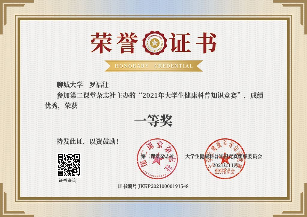 » 罗福壮在“2021年老员工健康科普知识竞赛”中获得一等奖