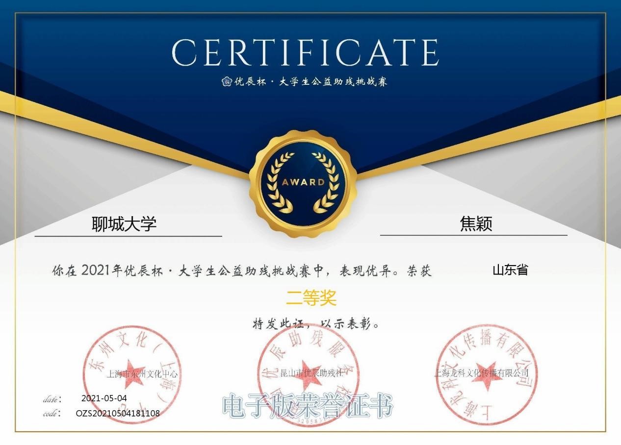 mk体育员工焦颖在2021年优辰杯·老员工公益助残挑战赛中荣获二等奖,她用才智和学识取得了此次收获,在此对焦颖致以最真挚的祝贺。