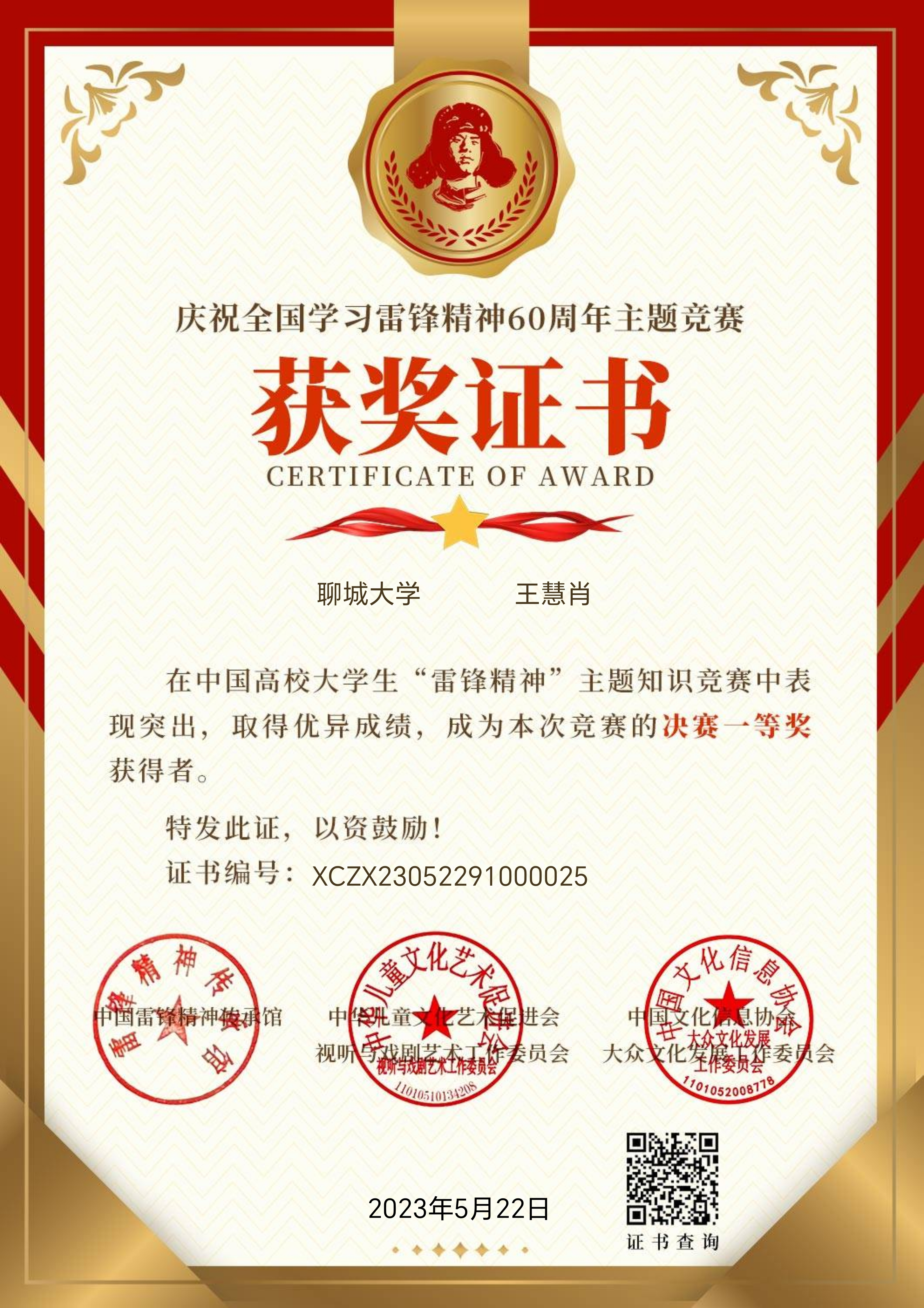 mk体育王慧肖同学在中国高校老员工“雷锋精神” 主题知识竞赛中获决赛一等