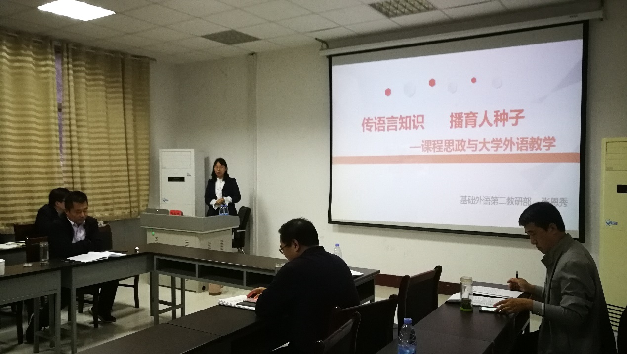外研社“教学之星”张慧老师围绕如何上好一堂课,从对教学有饱满的热情、学会换位思考、有明确的产出导向意识、教师自身进行持续不断的学习、教师敢于在教学内容和教学方法上创新、时常去反思自己的教学等六个方面做了分享。王红霞老师代表英语系综合英语课程组对综合英语课程“金课”的建设情况课程目前存在问题、课程建设内容、 课程建设进度和课程建设的困境四个方面做了汇报,指出了“员工中心、产出导向、持续改进”、“合理增负,富有挑战度”的课程建设理念和思路,以及围绕该理念所做的各项工作。程鹤老师从今年参加教学比赛的心得和英语语法在线课程的建设两个方面分享了如何打造金课堂,建设金课程。刘俊凤老师认为教育信息化的发展,员工数字化原住民特点和高校改革趋势都促使混合式教学成为目前和未来教学改革发展的必然选择。以《日本概况》课程为依托,从教学理念、教学内容、教学模式、评价体系四个方面就本课程开展混合式教学实践的体验做了汇报。张恩秀老师围绕“传语言知识 播育人种子”介绍了何为课程思政、为何课程思政和如何课程思政,认为教育的目标就是育人和育智的相结合,教师应围绕“培养什么人、怎样培养人、为谁培养人”持续努力。姜艳艳老师从自身经历出发分享了爱岗敬业型教师的成长之路经验,指出了创新课堂的重要性,同时认为教师工作绝不仅限于课堂教学,承担“教书育人”工作的教师们也必须时刻把员工的学业、身心发展、日常生活都放在心上。