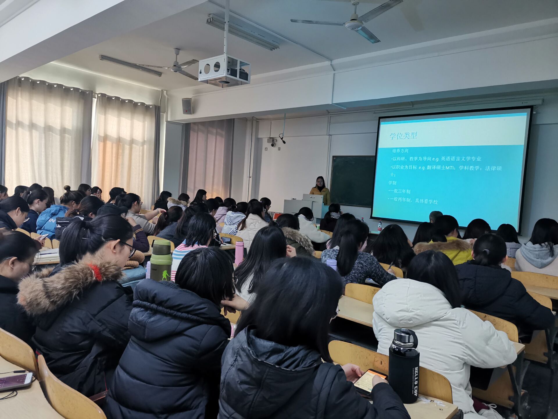 陈万会经理以自己的切身经历与同学们分享了考研的宝贵经验,他谈到“为什么要考研”时指出,考研从小的方面来讲是为人生创造更高的出发点,大点说是为国家做贡献。在当今社会竞争愈发激烈的情况下,学历是十分重要的,考研考博是人生比较重要的转折点。陈经理给将要奔赴考研战场的学子们提出三大建议:尽早准备、讲究方法、坚定信心。会议最后,李维滨副经理为大家介绍了考研的整体形势,他鼓励决定考研的同学一定要认准目标,矢志不渝,并动员在座学子现阶段做好自我评估工作,准确定位目标院校,他还为同学们提供了几个备战考研的方法:提高综合素质、提高核心技能、增强自信心、发挥主观能动性等。另外,他还提到公费师范生新政策,鼓励公费师范生积极参加考研,提高社会竞争力。几位老师就考研作了全方位的介绍,衷心祝愿同学们能够实现人生理想,精彩的讲话博得同学们阵阵掌声。