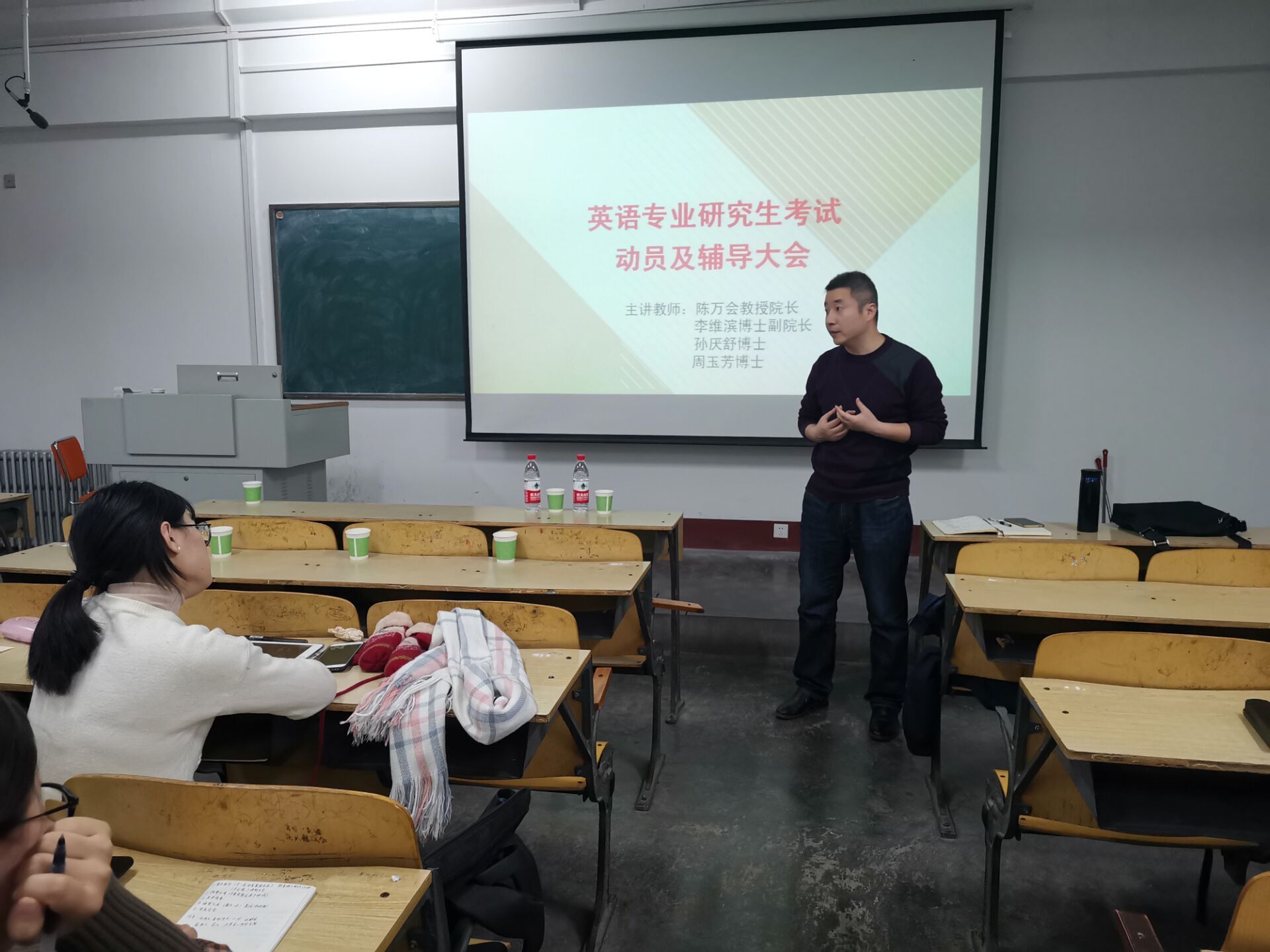 高峰只对攀登它,而不是仰望它的人来说有真正意义。为充分调动大三学子考研积极性,进一步挖掘员工自身潜质,1月3日,mk体育在西校区8#413召开英语专业考研动员大会。经理陈万会,副经理李维滨,教师代表秦洪庆、孙厌舒、周玉芳及2017级全体英语专业员工参加了本次会议。