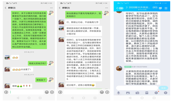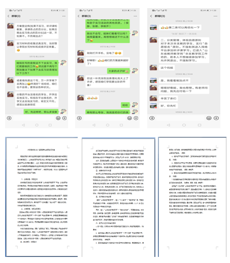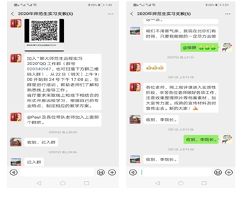今年实习较往年大有不同,增加了新内容、新形式。观评课网络平台的启用,对于即便负责实习工作多年的领导和老师,都是一项前所未有的尝试和挑战。但是,领导和老师们面对新事物并没有退缩,而是迎难而上,积极应对。首要任务就是赶制符合今年特殊形势的实习工作方案。没有任何经验可以借鉴,几位指导老师通过微信群不停商议、反复斟酌,终于完成了合时合宜的实习工作方案。