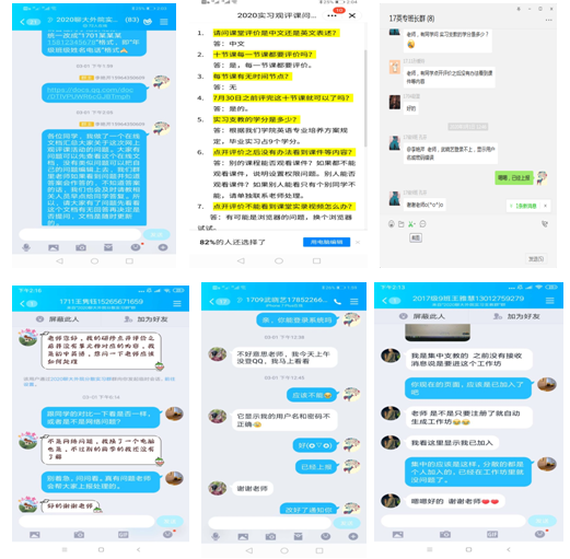 第一次实施网络实习支教工作,必然有疑难与问题存在,而针对每一位员工提出的每一个问题,指导老师们不辞辛苦地为员工寻找解决方案,通过在线文档、班长反馈、个人沟通等多种方式解疑答惑。担心员工会有太大压力,即使忙到很晚也不会错过员工的消息,晚上十一点多钟还会为员工们回复问题。