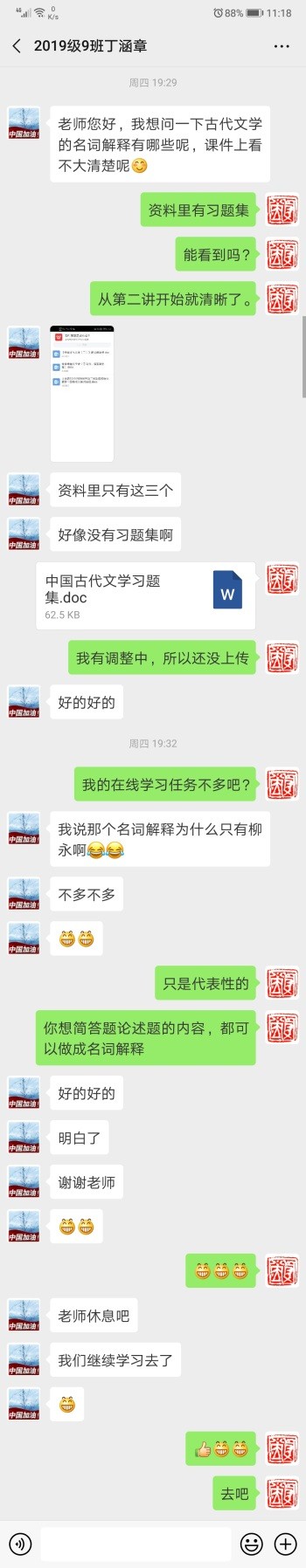 第二个方面,依据专业性质、所授课程在本专业人才培养方案中的性质、地位和作用、员工的学习需求及课堂教学活动的已然情况,制定在线教学的可行性策略。出于在线教学开始后网络拥堵现象的可能性预估,我初步决定了采取个人录制授课视频然后上传到超星学习通的方式进行在线教学。由于文学、文论类课程更需要课堂讲授之外的自觉、自主性学习(知识掌握、文本阅读、问题探讨等),且可以利用学习通进行作业、活动等考核方式的在线把握,因此在线教学完全可以在教师端实现大体与课堂教学类似的教学实践效果,并可以利用微信群等网络方式进一步拓展教与学的互动。根据以往教学经验,由于员工学习任务较多,阅读文本或理论资料都需要较多的时间,因此此类课程的互动延展性较大,往往不会立即体现在授课内容结束后的不久之内,而是甚至能够延展到毕业之后。此外,类似中山大学中文系也积极践行疫情期间不进行网课之类的在线授课活动,就是建立在对人文学科学习性质的基本把握之上的,因此,人文学科的相关课程的教与学,是完全可以做到相关要求的,教师只要完成相关教学任务,并时刻保持作为员工辅导答疑的团队力量“储备”,就会形成良好的教与学机制,而不必焦虑,更不需要恐慌。