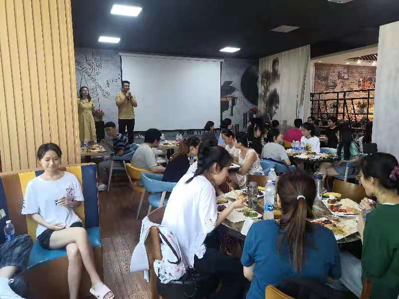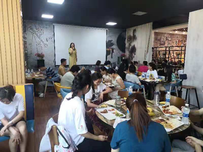 首先,王凯老师从诚信考试的重要性、复习的策略等多方面给同学们提出了中肯的建议,他认为,同学们在复习备考阶段中要善于灵活地调整自身状态,以积极开朗的态度投身于复习中。在老师的鼓励下,同学们纷纷表达了自身的感受以及复习阶段遇到的困难,老师亲身经历解疑答惑并结合实际给予建议,鼓励同学们调整好心态,要脚踏实地一步一步的来,耐住性子沉住气。岳圆老师则着重强调了离校回家应注意的问题,为同学们的离校安全保驾护航。优雅的环境为此次师生间交流营造了一个良好的氛围,在会餐过程中,笑容洋溢在每个人的脸上,同学们与老师互相交流着生活、学习,活动中的体会与心得,师生之间敞开心扉、畅谈甚欢。