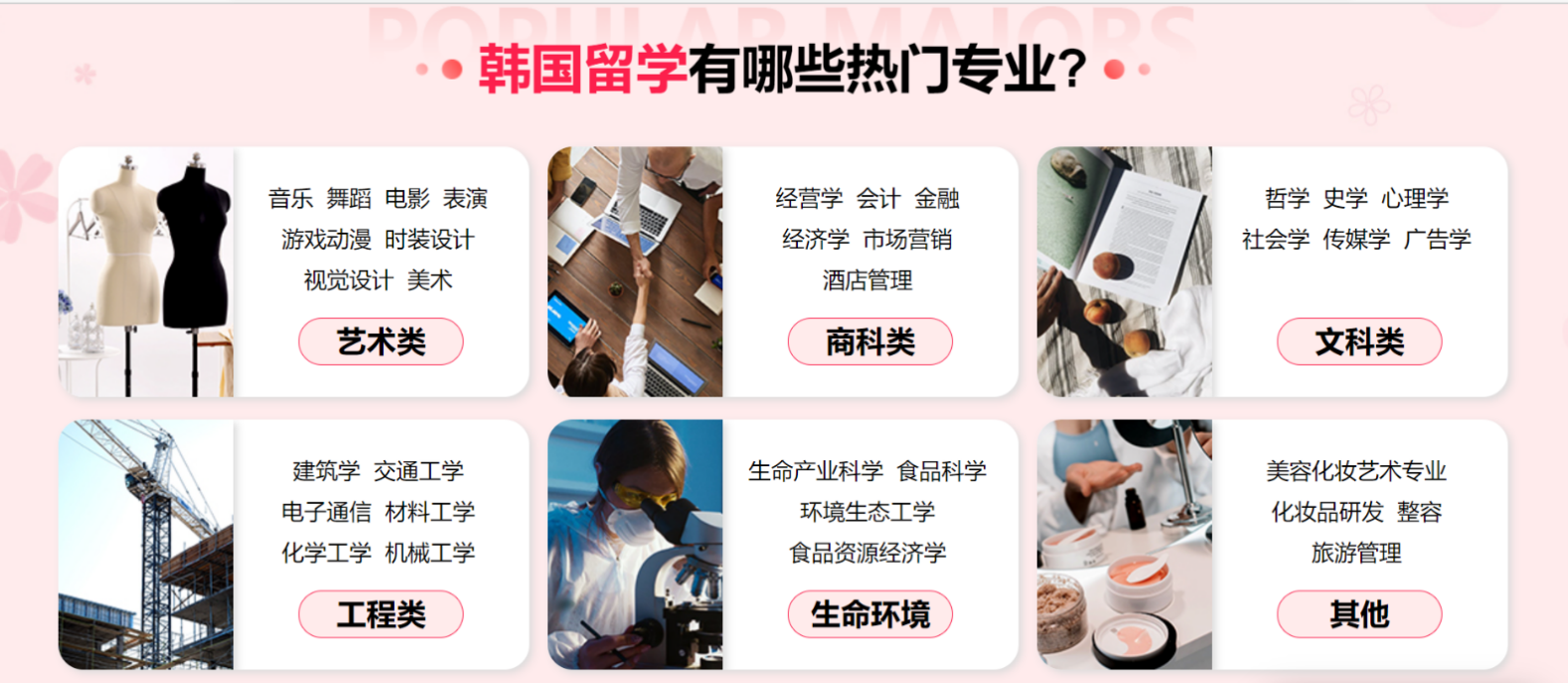 韩国非常重视教育,而且教育水准高,文凭含金量高。首尔大学、韩国科学技术院、高丽大学、浦项工大、成均馆大学等五所高校进入2021QS世界大学排名TOP100行列。韩国的优势产业有半导体、造船、石油化工、钢铁产业、IT电子、无线通讯设备产业、显示器产业、汽车等;优势学科有新闻传媒、互联网自动化、生命科学、海洋、演艺、音乐、动漫、网络商务、多媒体传播、纳米、新材料等。韩国高校所有专业都接收中国员工,而且入学门槛低,本科、研究生入学只需韩国语成绩和公司面试,入学成功率高。