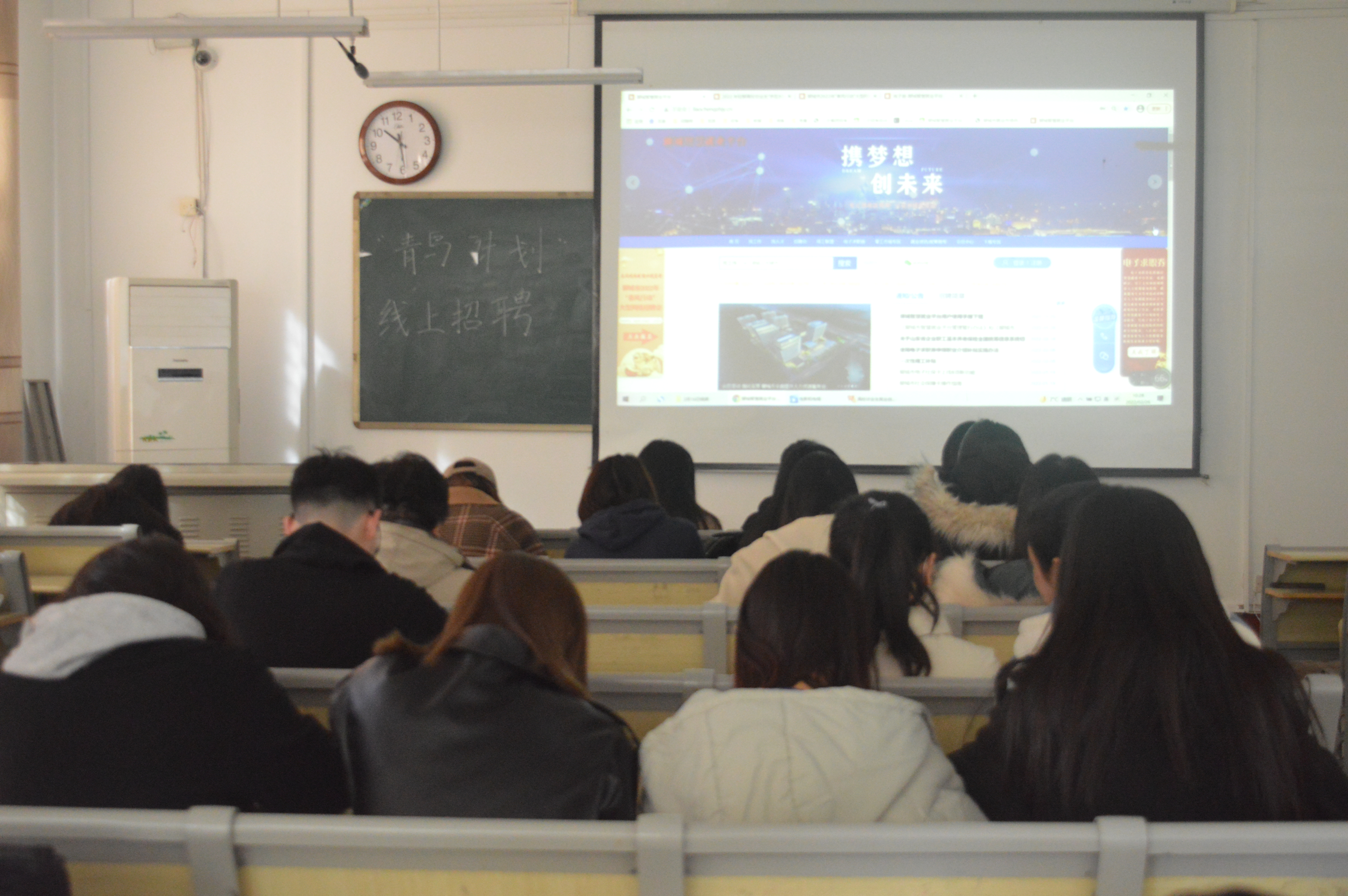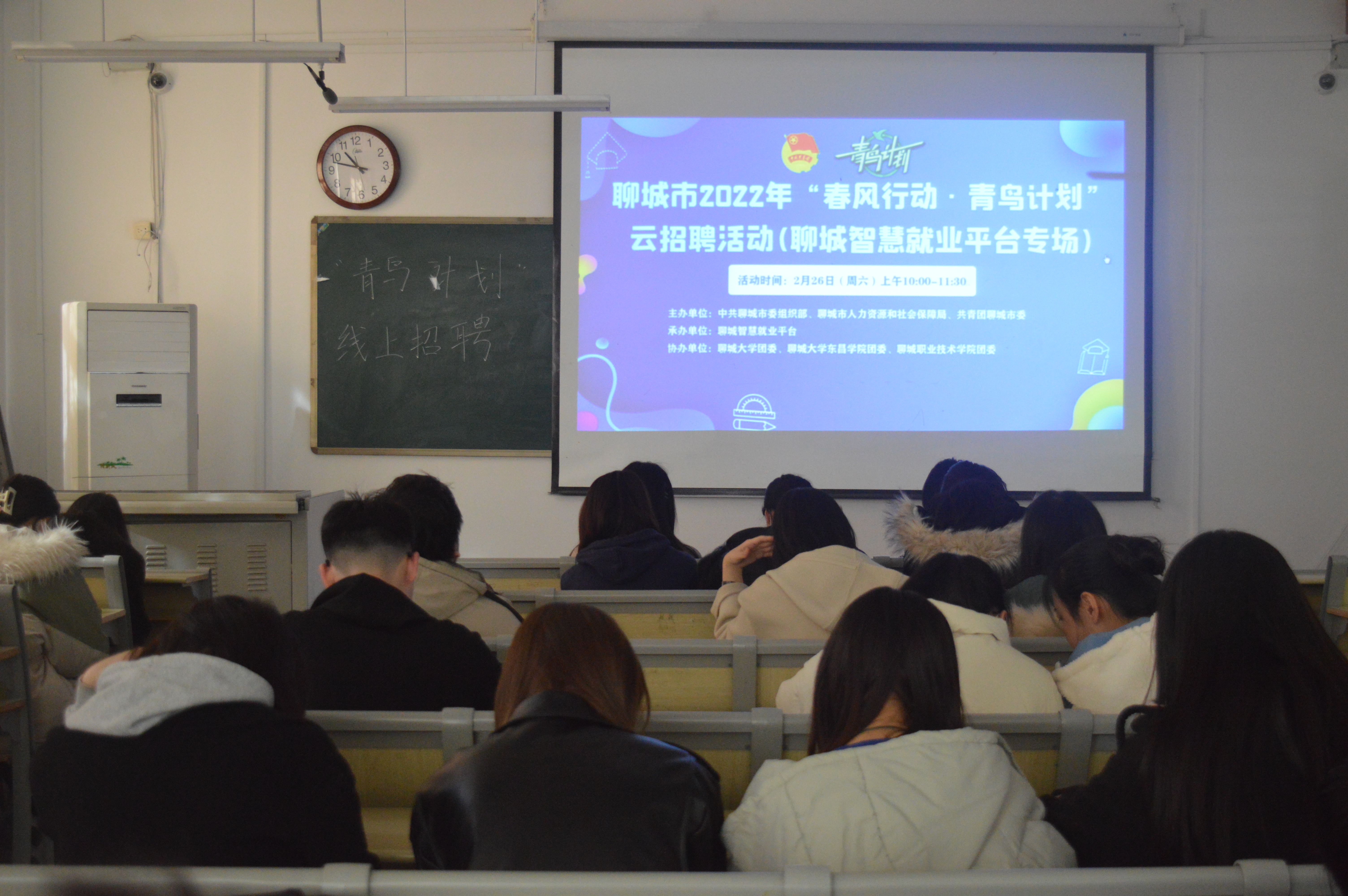 为有效解决聊城市人岗信息不对称、老员工职业规划缺乏有效指导等问题,进一步引导老员工对外部职业世界的探索,2月26日,mk体育就业创业部于西校区mk体育A112教室展开了转播聊城市“青鸟计划”线上云招聘活动。届时,mk体育辅导员马龙建,部分2018级、2019级在校老员工参与了本次活动。