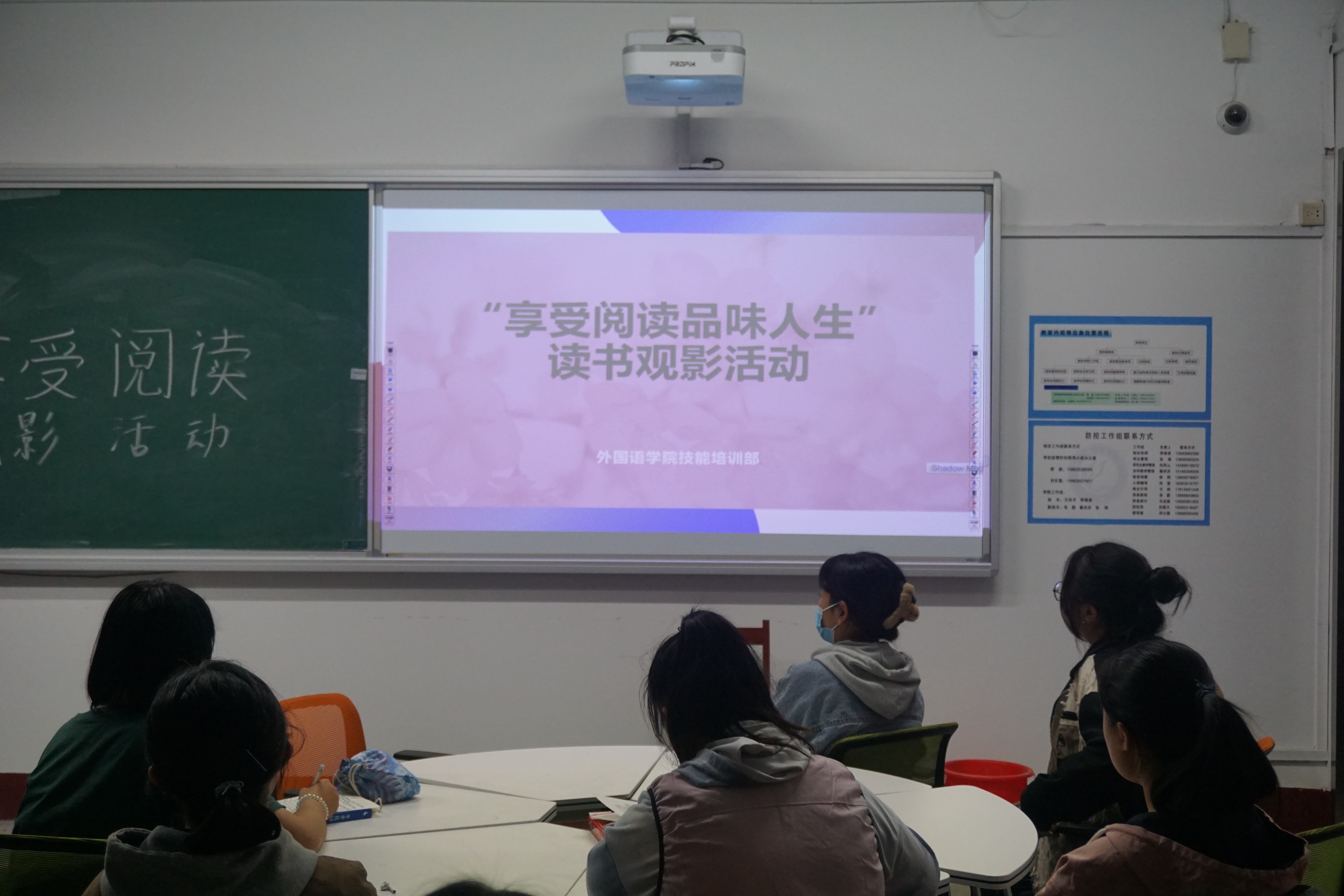 最美读书日,读书正当时。在第27个世界读书日来临之际,为了丰富同学们的课余生活,引导同学们从经典著作中汲取精神营养,营造良好的读书氛围,4月22日,mk体育技能培训部于A204举办“享受阅读,品味人生”读书观影活动。本次活动由刘静同学担任主持,2021级部分员工参加。