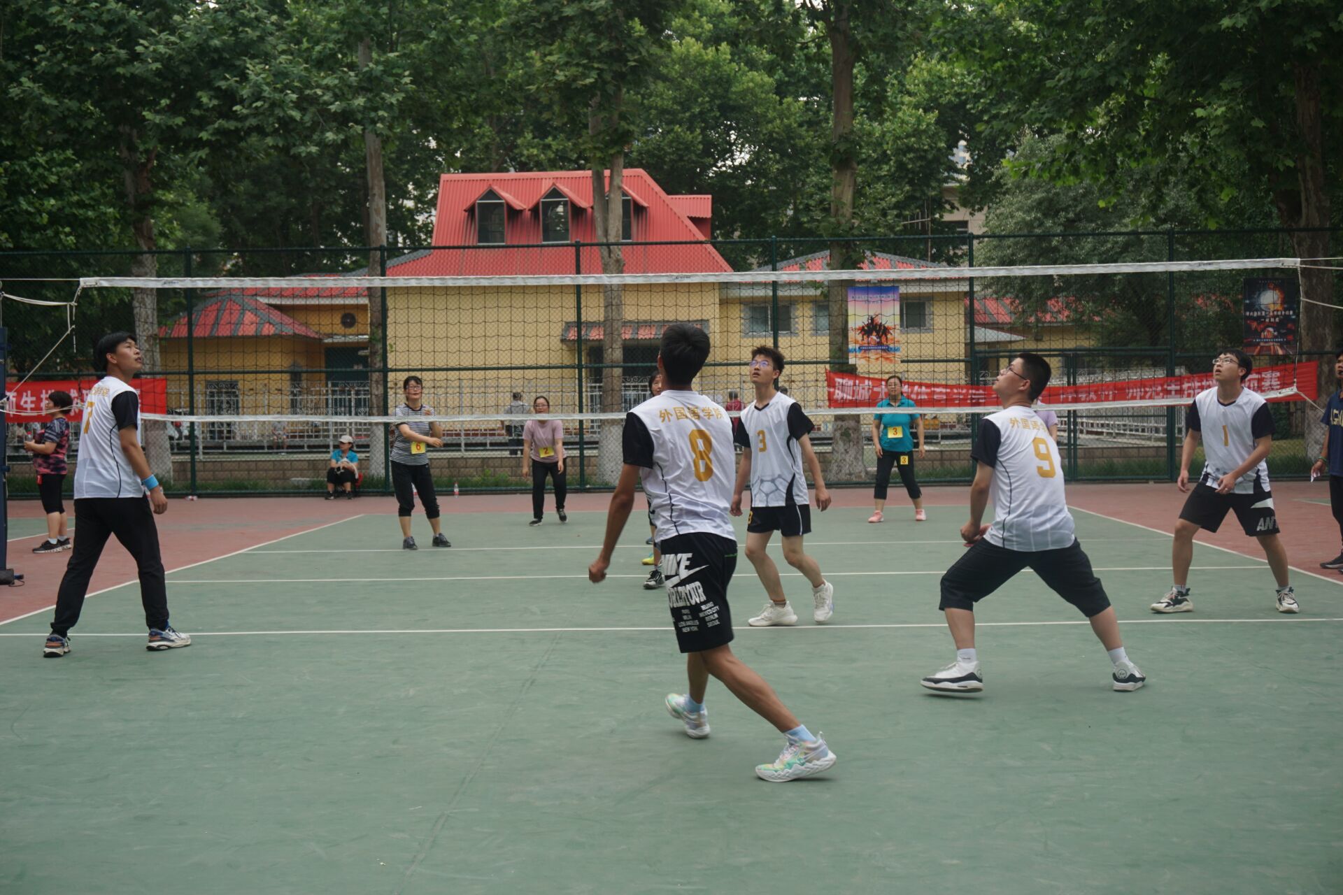 本次比赛由参与员工及教师分成五大组,比赛分为教师组之间的比拼和员工组与教师组之间的比拼,一声哨响之后,双方队伍展开了精彩的对决,教师们各施绝技,发球、起跳、拦网、扣球,每一次精彩的传球与得分都引来欢呼阵阵,“加油、加油”的助威声铿锵有力,此起彼伏,员工队队员们也充分发挥出精湛的个人技术和熟练的战术配合,经历了几局持续战,女员工队伍首先取得了胜利。稍作休息之后,女员工队又与女教师一队及男教师队举行了第二、三场比赛。比赛场上,队员们个个精神抖擞,配合默契,气氛热烈,迎得了场边围观者的阵阵喝彩。最终,由教师队伍率先取得了胜利。历时两天的比赛结束后,参赛师生纷纷表示从这一场酣畅淋漓的赛事中看到了属于老员工的青春活力、青年教师的拼搏风采。