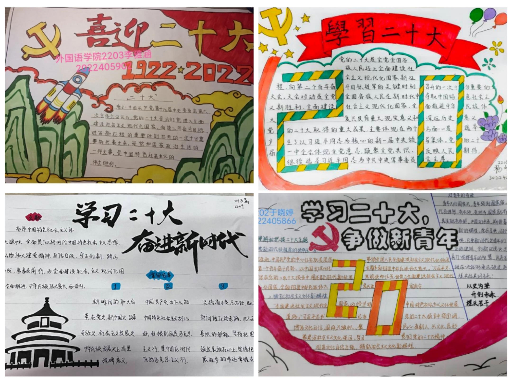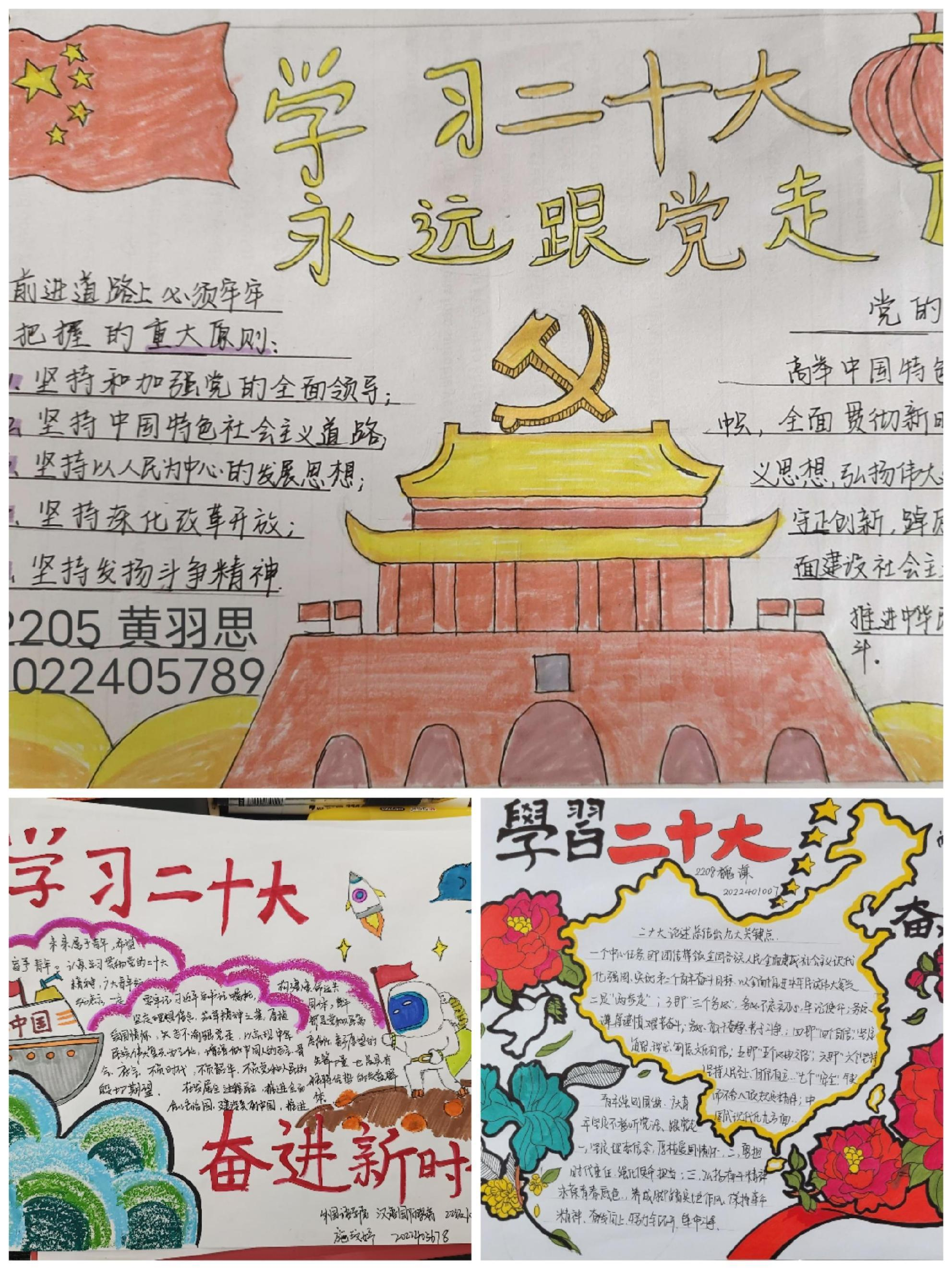 通过此次手抄报活动,同学们积极查阅有关二十大的内容资料,通过绘画的方式将自己对二十大的所思所想呈现出来,富有创意的画作和工工整整的文字,都彰显了我们mk体育学子定会坚定不移的跟着党的步伐,以青春之我,让青春之花在实现中华民族伟大复兴的新征程上绚丽绽放。通过本次活动,同学们学习党的二十大精神,提高了政治素养,纷纷表示要怀抱梦想,脚踏实地,敢作敢为,善做善成,立志成为有理想有本领有担当的新时代好青年,为实现中国梦奉献智慧和力量。