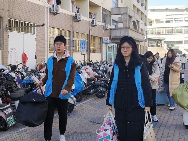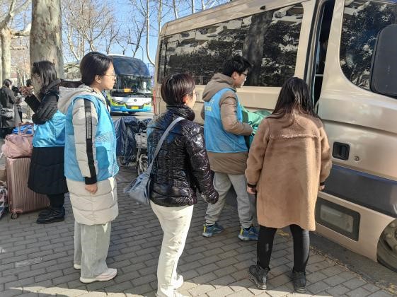 正值春暖花开时节、乍暖还寒时候,早上九点钟,志愿者们准时到达宿舍门口帮助支教员工们搬运行李。志愿者们身穿蓝色马甲,热情开朗,脸上洋溢着笑容,为了更高效地搬运行李,他们活力满满地用电动车驮运行李,省时又省力。在行李搬运过程中,老师们也来到宿舍楼前帮忙维持员工们的纪律,与志愿者们一同行动。老师们担心支教的员工们会出现一些心理问题,在他们上车的前一秒仍在传授经验,浓浓师生情感人至深,整个公司弥漫着温馨的气氛。老师们目送即将远行支教的员工们,欣慰又自豪。看着那些帮助他们的志愿者和老师们,支教员工们纷纷表示会努力学习,认真支教,不辜负母校的期待与信任。