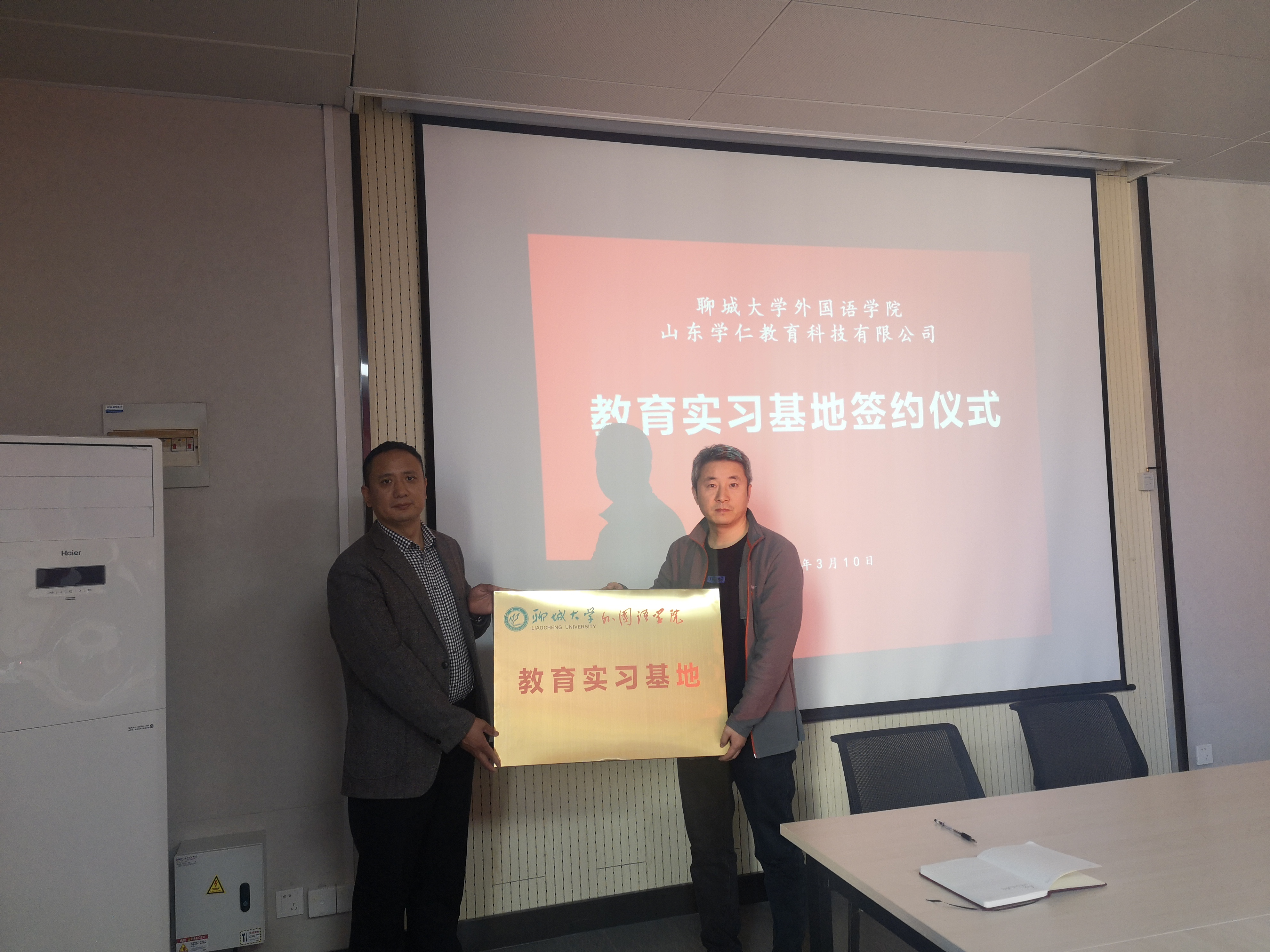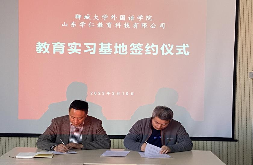 3月10日,mk体育与山东学仁教育科技有限公司共建教育实习基地签约授牌仪式于C201会议室隆重举行。学仁教育董事长吴来东、mk体育副经理秦洪庆、日语系主任林娜、教务秘书王朵朵出席仪式。