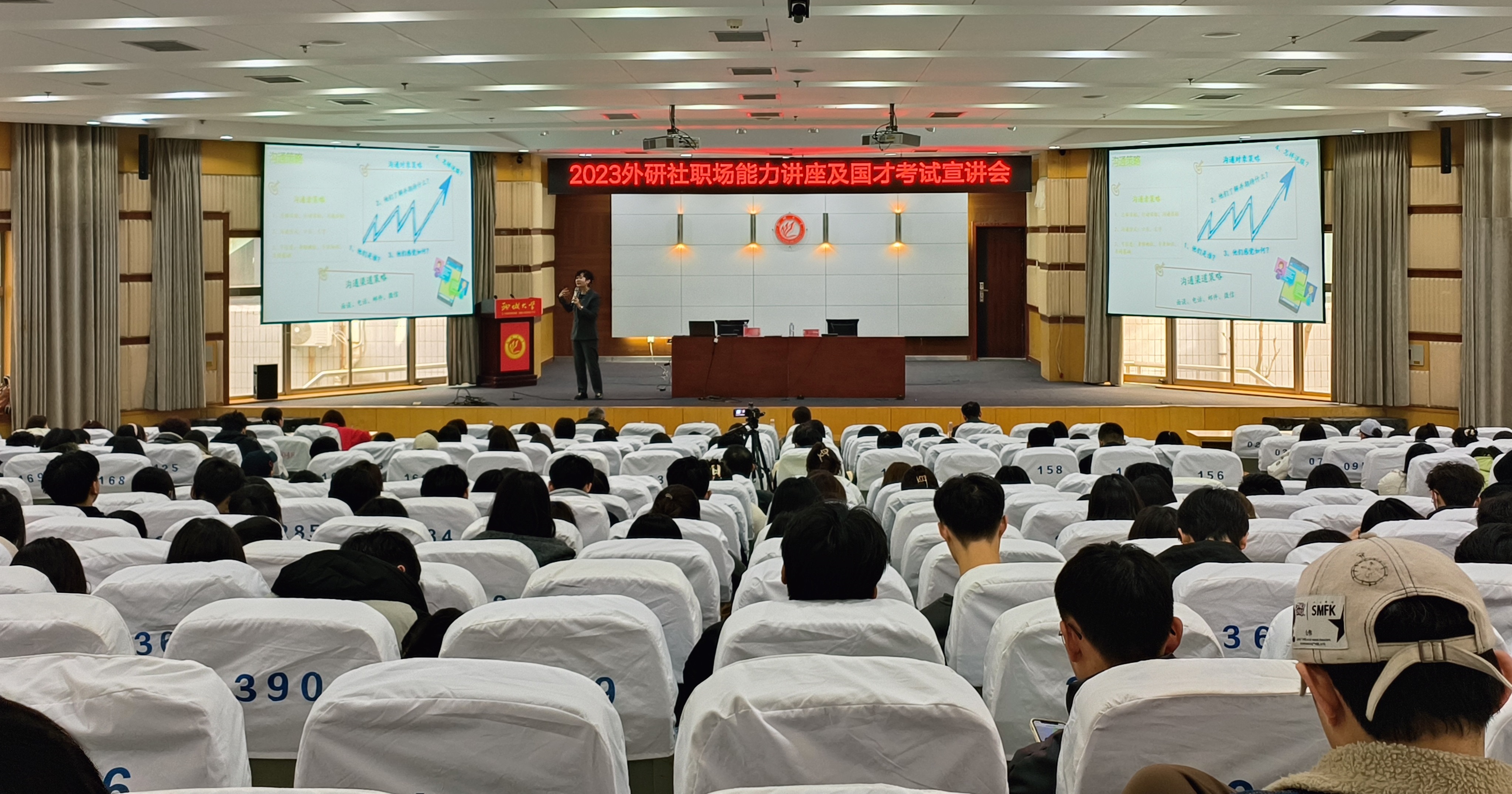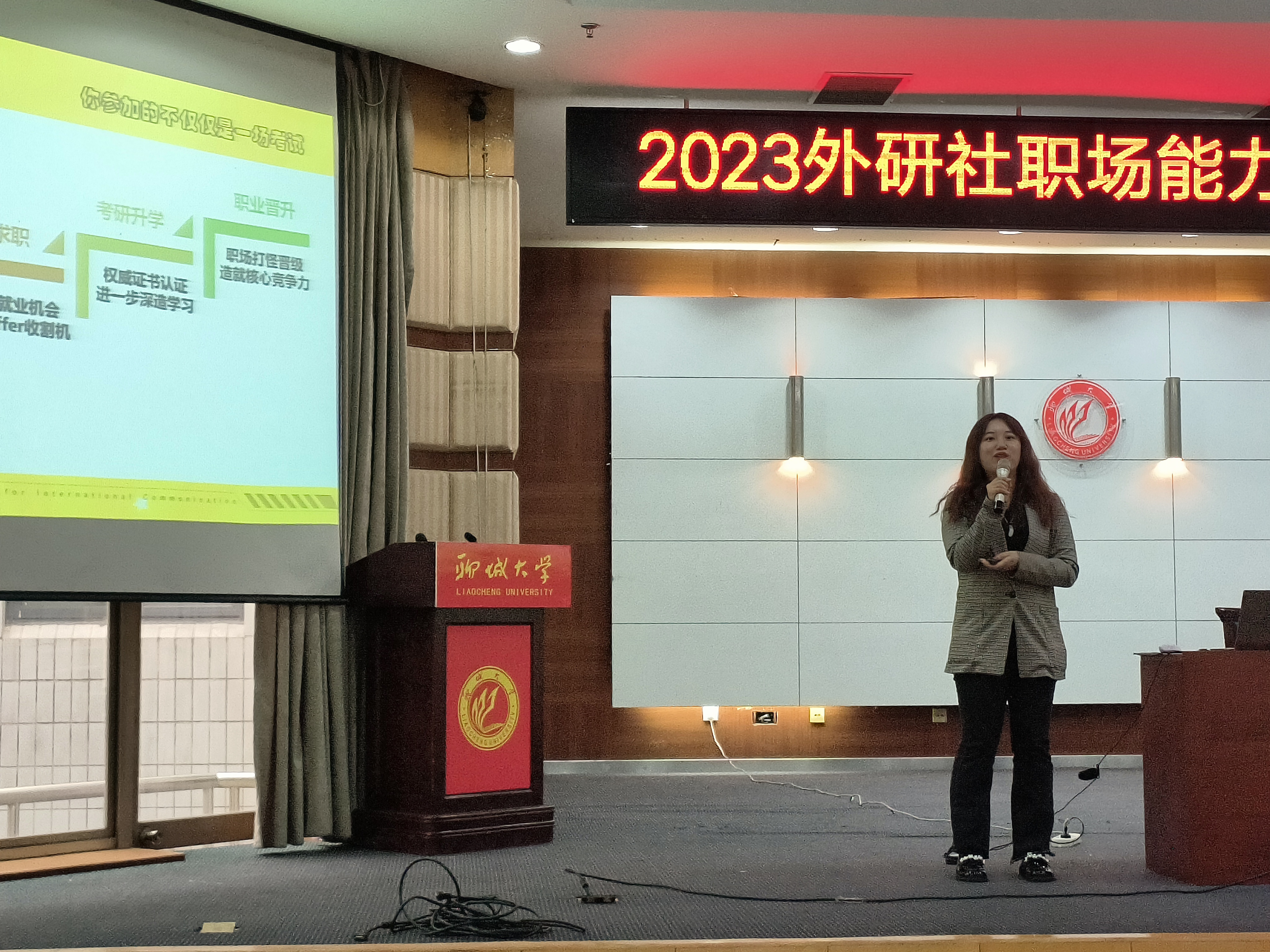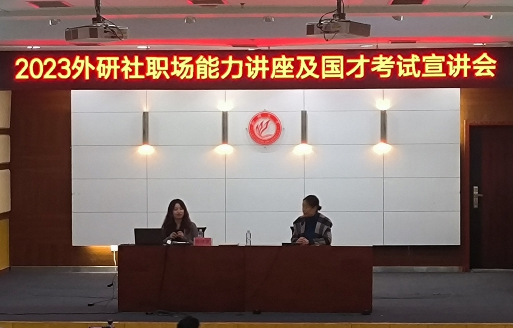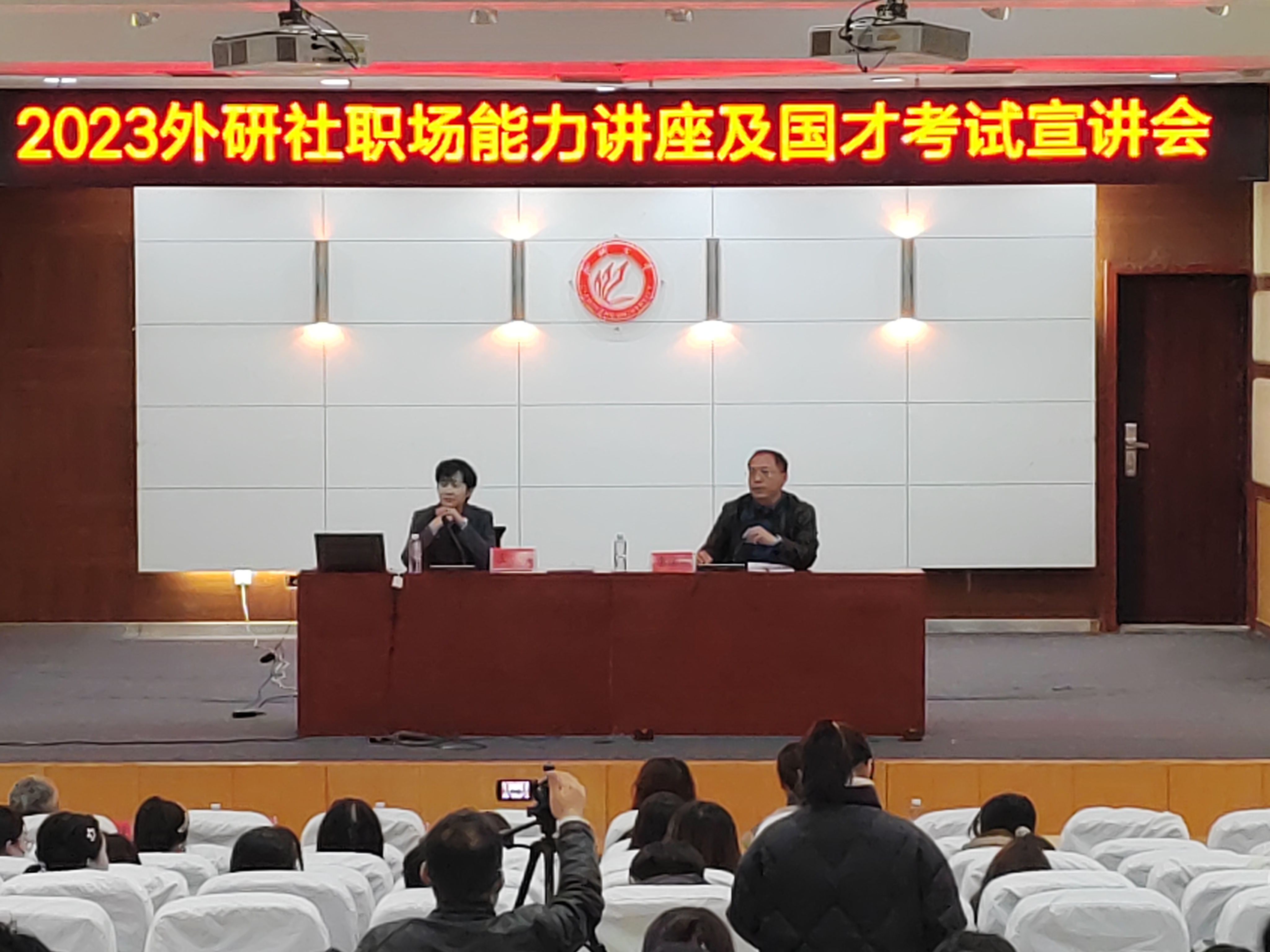 4月16日下午,外研社“以始为终——职通精彩未来”职场能力讲座及国际人才英语考试(简称“国才考试”)宣讲会在mkmksport西校区图书馆大报告厅举行。本次讲座和宣讲会为校团委青鸟计划就业专题培训活动之一,由校团委主办,mk体育团委和大学外语教研部承办,旨在帮助公司员工合理做好职业规划,提升职场竞争力。本次活动由mk体育副经理李维滨(主持工作)主持,特邀外研社外研教育测评中心总经理王悦以及国才考试华东区域负责人郭棣棠老师担任主讲人,mk体育副经理李燕飞、副经理秦洪庆、大学外语教研部和英语系部分教师及mkmksport各公司员工聆听了本次讲座和宣讲会。