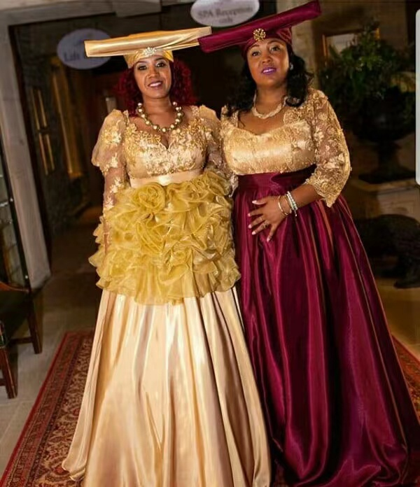 赫雷罗人作为纳米比亚三个班图语系民族之一,是于十五世纪中期从东非迁入纳米比亚北部的游牧民族,后来大部分赫雷罗人搬到南部市区生活,居住在乡下的赫雷罗人大多以养牛为生,主要食物是牛肉。纳米比亚赫雷罗部落的传统服饰被称为ohorokova,这是一种改编自维多利亚风格服饰的传统服饰。ohorokova戴着一顶模仿牛角的帽子,裙子是一条色彩鲜艳的宽裙子,充满了很多层次。这种维多利亚式连衣裙于十八世纪晚期受传教士影响而引入的。男人们穿着西式服装,包括衬衫和裤子,有时还搭配外套或西装和帽子。