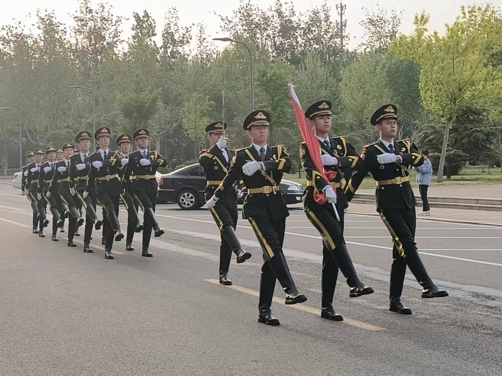 上午6点50分,升旗仪式正式开始。伴随着指挥员清脆洪亮的口令,国旗护卫队迎着微微晨曦,迈着铿锵有力的步伐走向升旗台。擎旗手挥臂扬旗。在庄严雄壮的国歌声中,鲜艳的五星红旗冉冉升起,全体人员面向国旗肃立致礼,表达对伟大祖国的无限热爱。