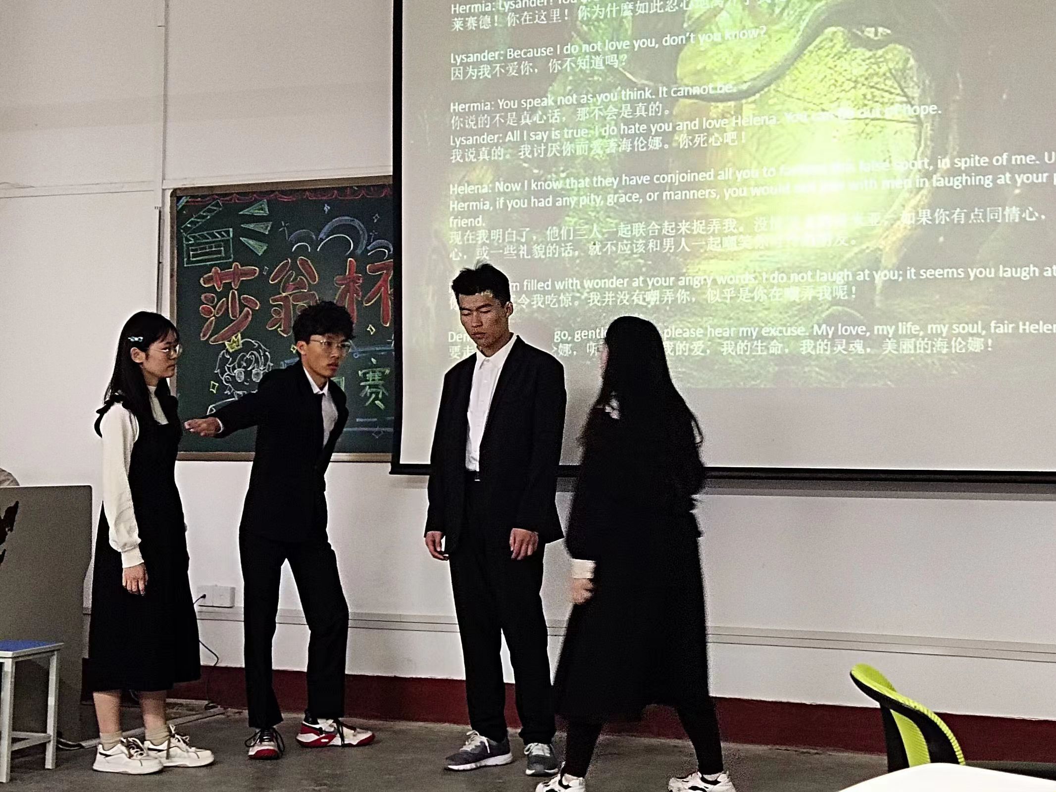 本次初赛设有三个组别:其它语种组、英语专业组及非英语专业组。活动伊始,主持人宣读开场白,宣布莎翁杯话剧初赛正式开始。各组参赛选手依次上台表演,以精美的服饰道具、出色的口语能力、扎实的台词功底和对角色情感的精彩诠释,将一部部话剧生动活泼地展现在舞台上。