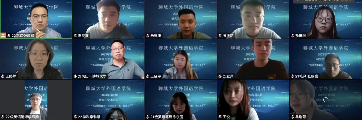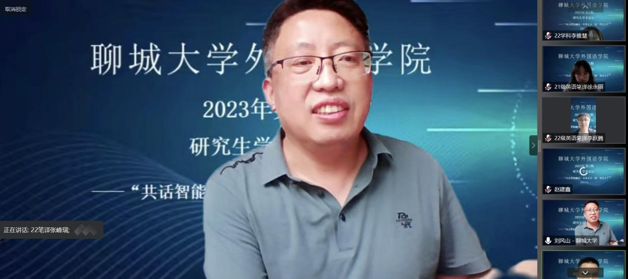 为激发研究生学术创新意识,引领研究生学术创新风尚,搭建研究生学术交流平台,mk体育科研部于5月11日下午举办2023年mk体育第2期学术论坛,主题为“共话智能翻译——未来是否‘机’智过人”。本次论坛为线上研讨,由科研部副部长张峰瑞主持,mk体育副经理刘风山教授担任述评人,2021级英语笔译8名研究生主讲,其他33同学聆听了论坛研讨。