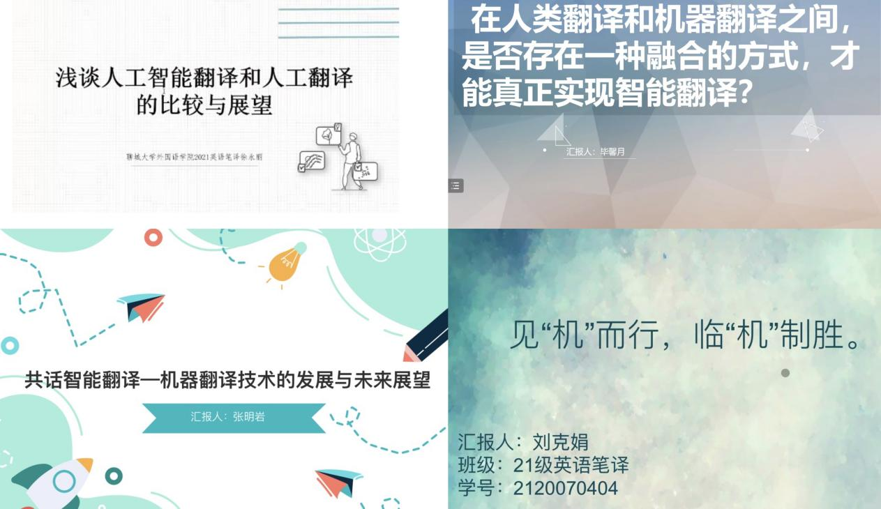 论坛上,8名同学依次进行个人汇报。同学们从机器翻译的定义、类型、发展、优缺点以及未来展望等多角度对论坛主题进行延伸,并结合自身的学术理解作了详细的报告。其中,王婷婷同学指出:纵然人工智能在机器翻译领域的应用依旧存在些许弊端,但在对自然语言的处理上,AI科学无疑已经取得了较大突破。我们作为科技成果的体验者,相信通过随着AI科学的进一步发展,通过深度学习将有望使机器逐渐掌握各种技能以适应人们的美好生活需求。徐永丽同学在论坛中提到翻译团队建设,将计算机辅助翻译融入翻译专业,确立CAT课程的地位,掌握机器翻译的相关知识,实现译文的高水平,进而实现译者的自身价值。刘克娟同学分享了徐刚教授关于HR的看法:“HR最重要的任务不是学会算法,而是了解人性需求,将人性需求与技术连接。”,并发表了自己的见解:“翻译不能只有速度,也要有温度”。毕馨月同学提出:机器翻译和人工翻译之间并非对立,两者的关系实际是相辅相成的,最佳的翻译模式是将这两者结合起来,优势互补,形成1+1>2的效果。