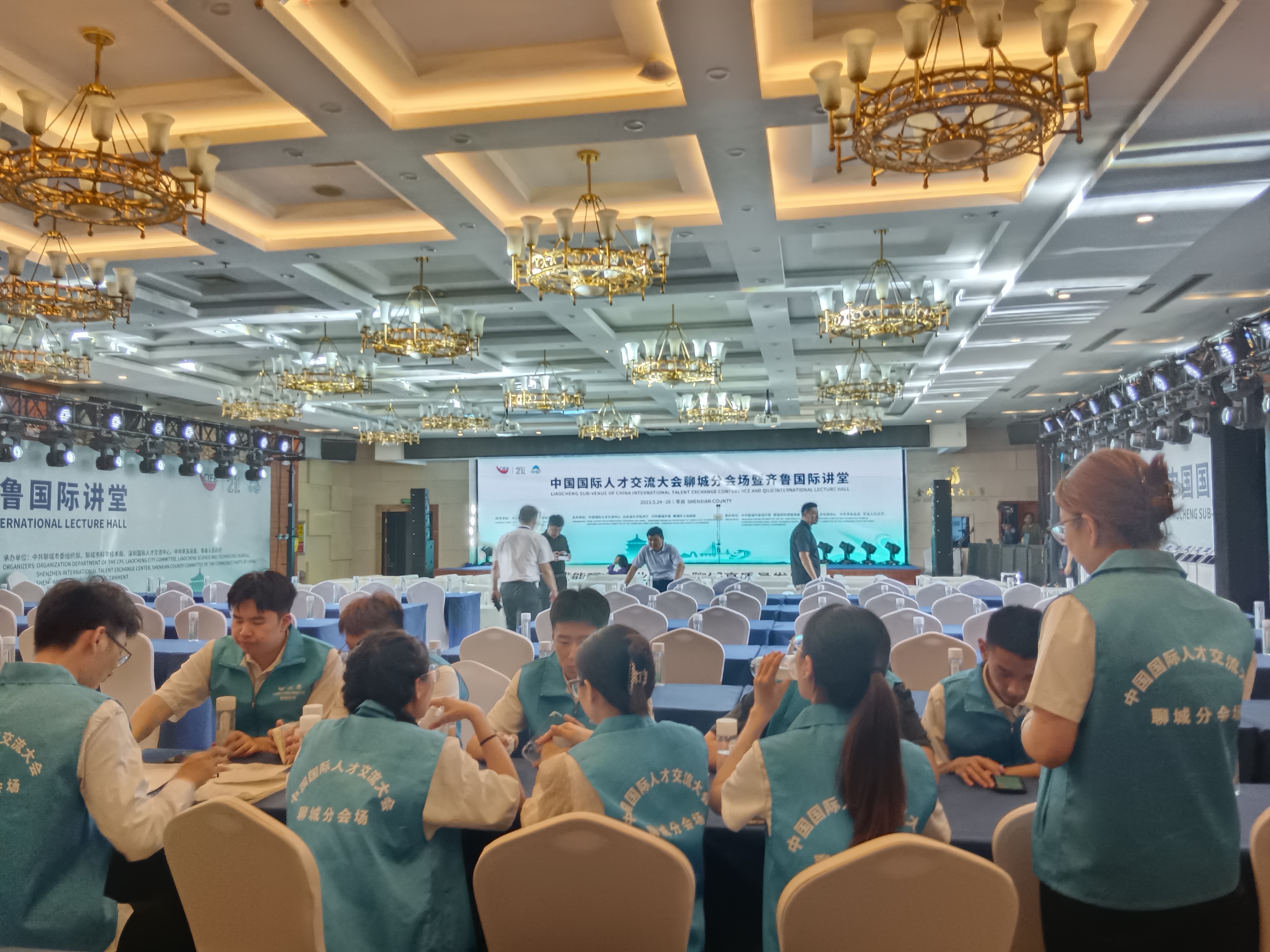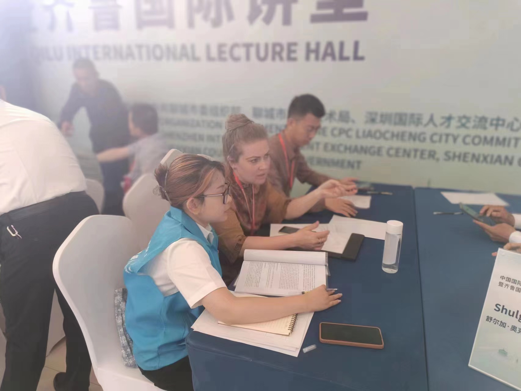 2023年5月24日至26日,mk体育15名员工在李静老师的带领下为第二十一届中国国际人才交流大会聊城分会场暨齐鲁国际讲堂活动提供英语、日语等多语种翻译志愿服务,得到组委会和国内外专家高度评价。