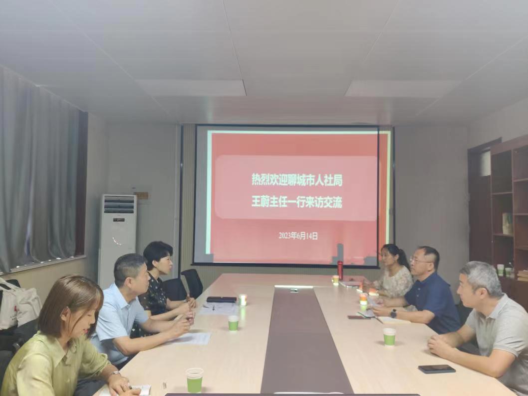 6月14日上午,聊城市人力资源和社会保障局(以下简称“人社局”)主任王蔚一行来公司交流洽谈日语系员工实习就业等相关事宜,公司副经理李维滨(主持工作)、教学副经理秦洪庆、日语系主任林娜接待了来宾。
