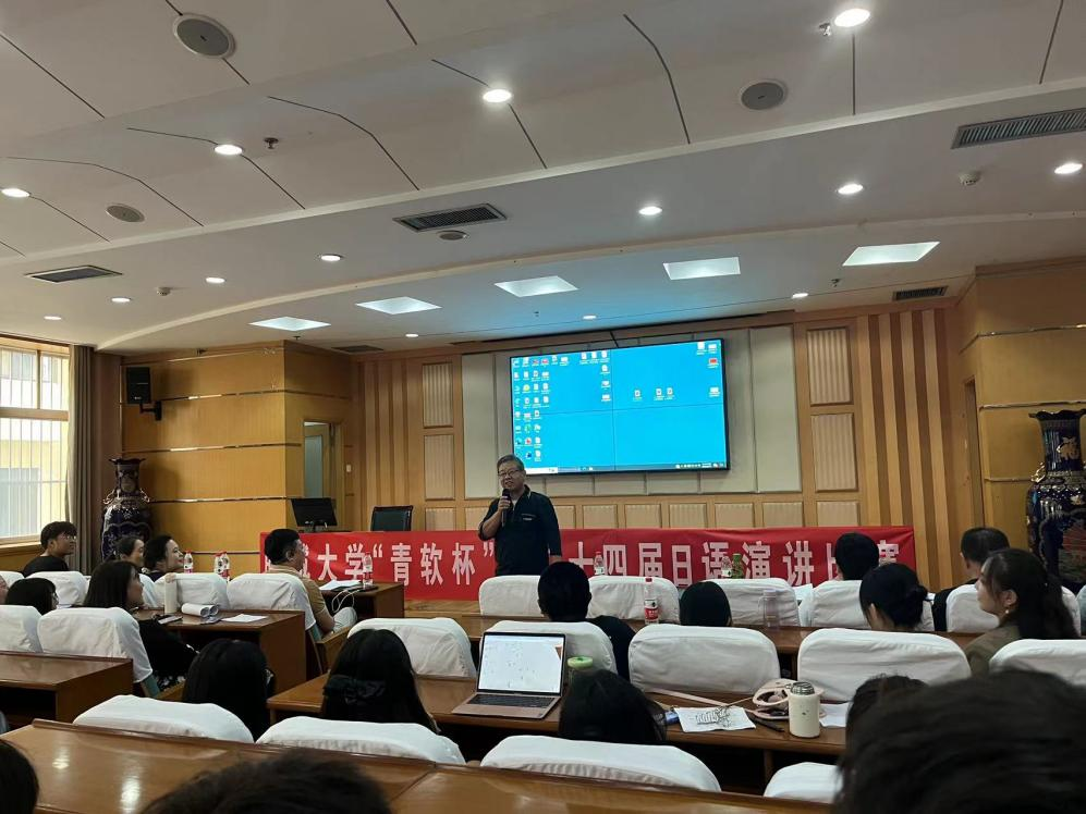 比赛伊始,秦洪庆副经理和刘会斌总经理分别致辞。秦经理回顾了日语系和青软集团的合作历史,介绍了日语系员工参加中华日语演讲比赛取得过的辉煌成绩,指出教学与科研成果丰富的日语系是同学们学习道路上的坚强后盾。刘会斌总经理充分肯定了公司在人才培养方面取得的成绩,同时也表达了今后进一步加强校企合作的期盼。
