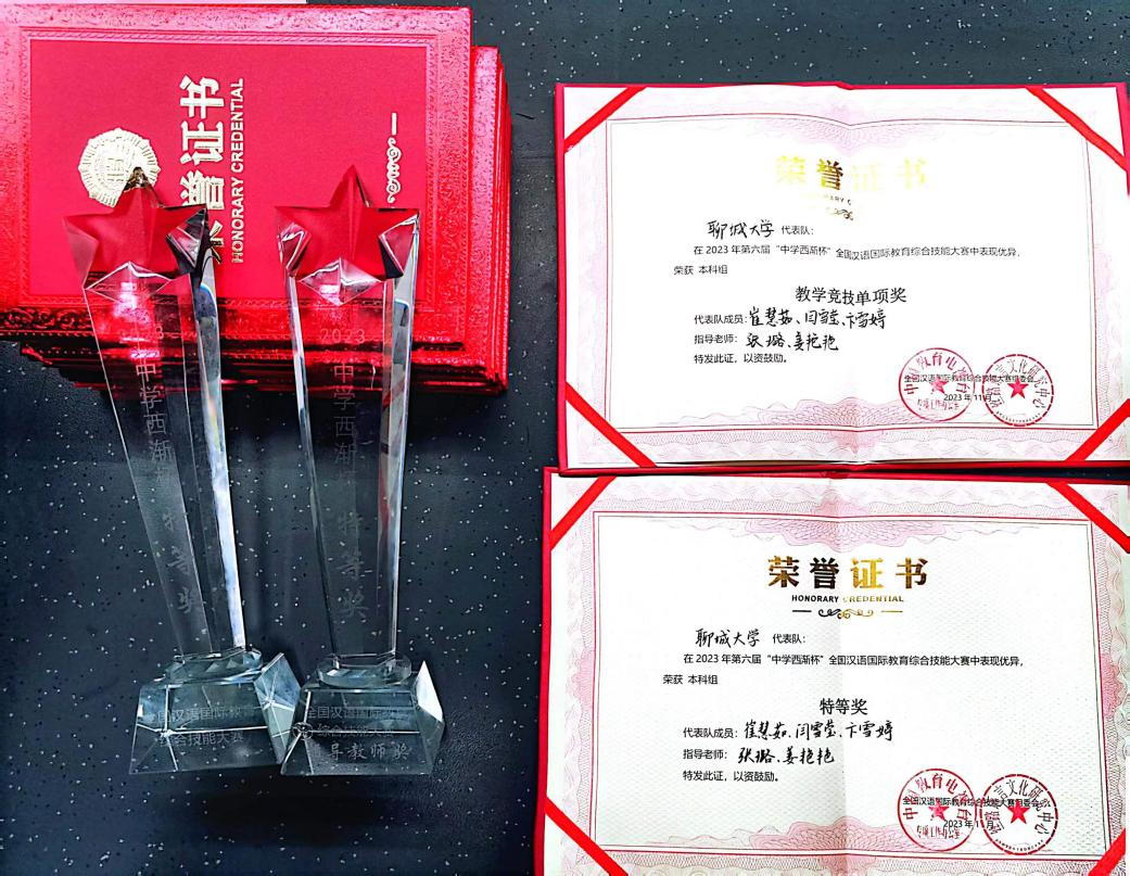 2023年11月12日,第六届“中学西渐杯”全国汉语国际教育综合技能大赛总决赛在江西赣州落下帷幕。由mk体育汉语国际教育专业本科生崔慧茹,闫雪莹,卞雪婷组成的参赛团队荣获全国特等奖和教学竞技单项奖双重奖项,创造了公司选手参加此项赛事的最高成绩,汉语国际教育硕士生潘星如,岳瑞雪、刘子腾组成的研究生团队荣获全国三等奖。