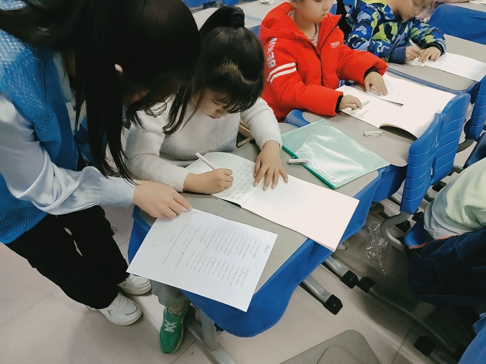 本次课的主题是字母教学,志愿者们提前做好了准备工作。活动中,首先播放了英文字母歌,让小朋友们跟着唱,伴随着动感的节奏,参与活动的小员工跟随歌曲一起唱了起来,对英语字母的学习产生了浓厚的兴趣。随后,志愿者带领小朋友们复习学过的知识,并进行提问,小员工们积极作答。之后学习Vv,Ww,Xx,Yy,Zz五个字母,每个字母延伸三个简单的单词,用来拓展知识面。接下来,对于刚才所学的单词与字母,先同桌相互提问,再由志愿者随机提问,小朋友们争相举手,展现了对英语学习的热情。最后,志愿者再次播放英文字母歌,小员工跟着英文歌进行复习,巩固记忆。