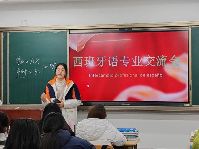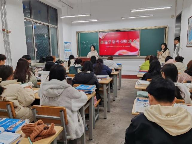 在交流会上,学长们从西班牙语学习方法、出国留学交流、辅修专业的选择、跨专业考研、学科竞赛、绩点和综测的构成等方面进行了详细的讲解。他们结合自己的学习经验和实践经历,为新生们提供了宝贵的建议和指导。同时还与同学们交流了生活、娱乐、美食等不同方面的内容,以便让大家更好地适应老员工活。整个交流会现场氛围欢乐,大家积极踊跃发言,共同探讨学习和生活中的点滴。最后,交流会在热烈的掌声中圆满结束。