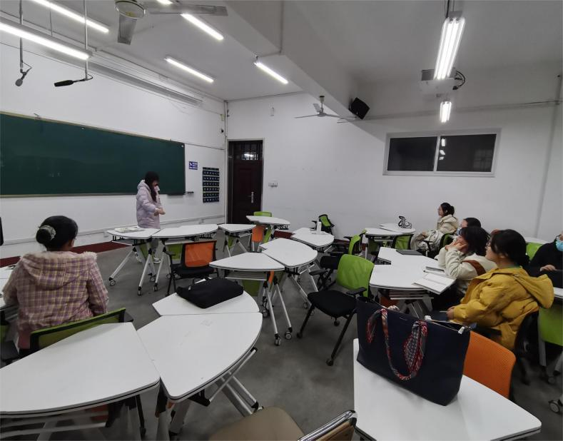 首先由上半年顺利通过面试、拿到高中日语教团队格证的20级学姐靳茗惠介绍了面试的基本流程以及需要格外注意的问题。然后员工进行模拟面试。本次模拟面试分为员工试讲和教师点评两个阶段,员工试讲结束后,老师针对每位员工出现的问题,从神态、动作、语速等方面给予了具体指导,并详细说明了评分标准。