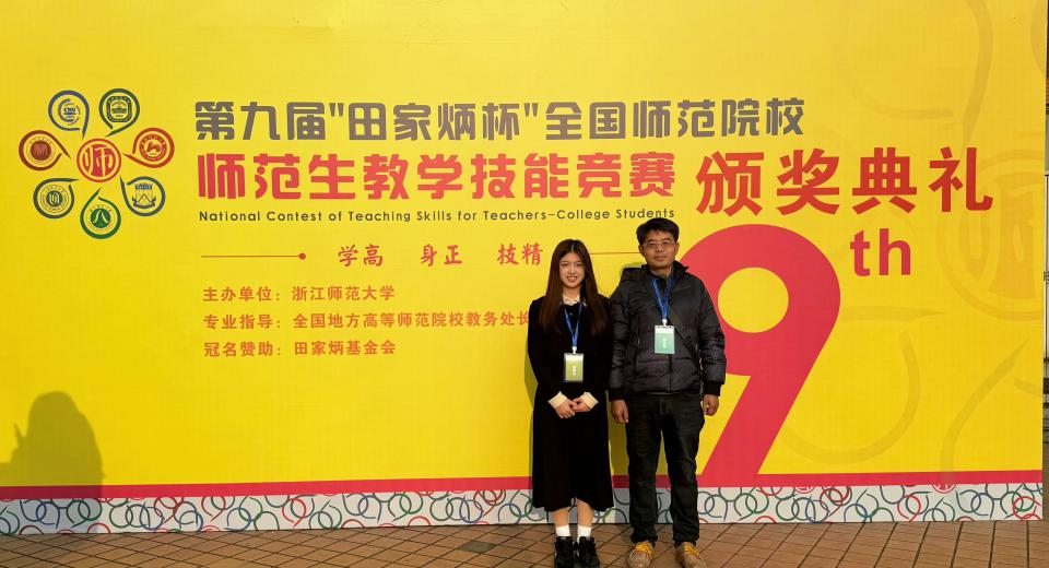 2023年12月30-31日,第九届“田家炳杯”全国师范院校师范生教学技能竞赛决赛在浙江师范大学举行。在mk体育教师教育与实践中心主任孟令新、副主任李艳芹的带队参赛中,公司2020级3班英语(师范)专业的张盈同学获得小学教育综合组全国二等奖。