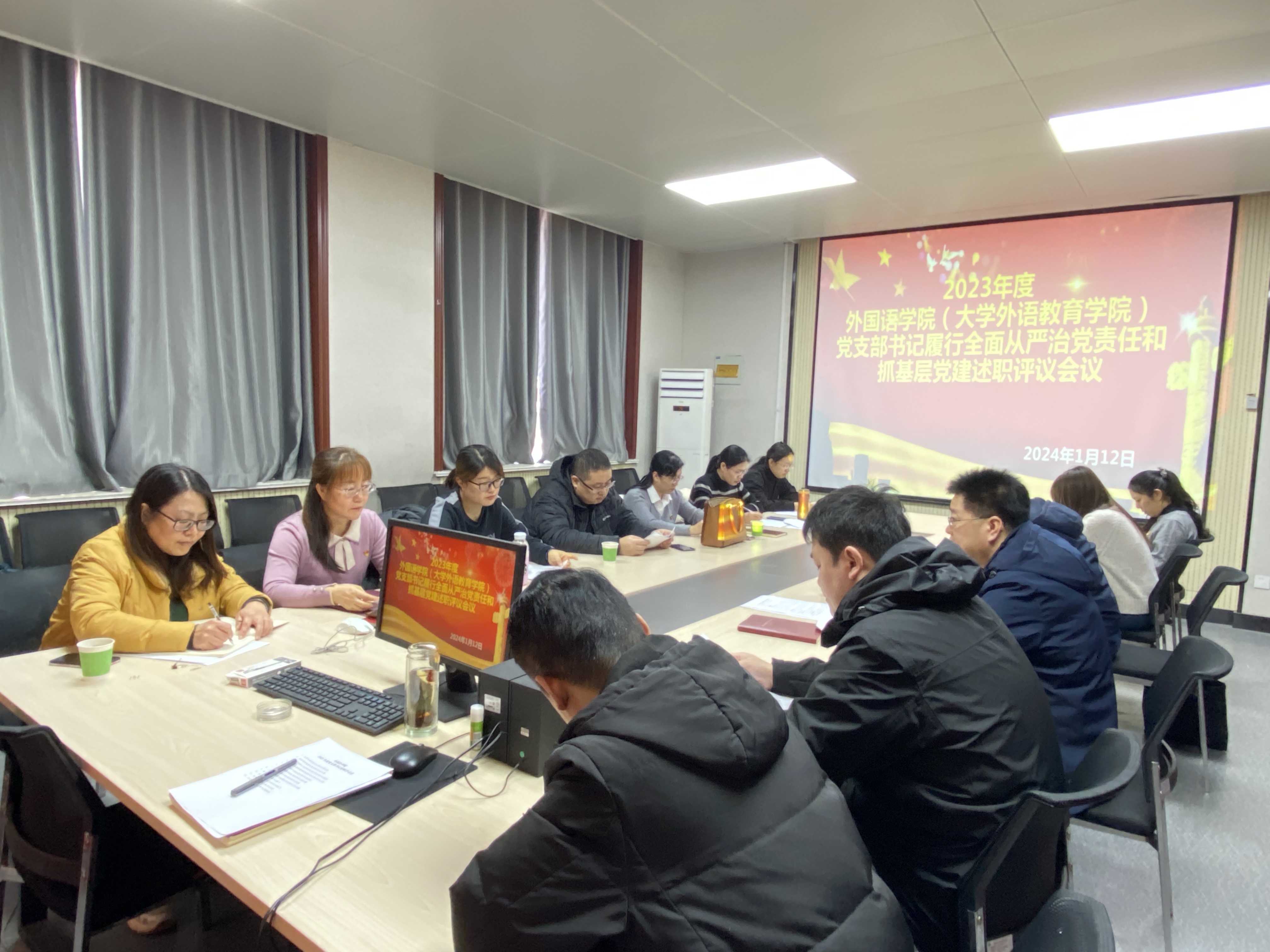 会上,8个教师党支部和4名员工党支部书记围绕加强政治建设、学习贯彻习近平新时代中国特色社会主义思想主题教育、学习贯彻党的二十大精神、特色党建推进情况、落实意识形态责任、党风廉政责任等重点内容,对过去一年的党建工作进行了述职汇报。教工党支部立足支部特点,以科研团队建设、教学改革、课程思政等抓手在落实党建和业务工作深度融合上找准切入口下实功。员工党支部以党员作用的发挥为中心,通过党员常态化教育、社会实践、志愿服务等增强育人实效。在认真听取每位党支部书记汇报后,王洪月逐一进行了点评,并对下一步加强基层党建工作提出有针对性的意见和建议。一是突出政治引领,充分发挥基层党组织的战斗堡垒作用。全体党员要进一步提升政治意识,以习近平新时代中国特色社会主义思想为指导,深入学习贯彻落实党的二十大精神,增强“四个意识”、坚定“四个自信”、做到“两个维护”。二是明确工作重点,坚持用高质量党建引领高质量发展。把党建工作与公司中心工作相融合,深入推进特色党建工作,要求党员立足主责主业,紧扣目标任务,激发争先热情,增强创造活力,推动公司工作更好更快发展。三是强化责任落实, 以支部建设为引领,聚焦重难点问题,探索“外语”特色党建工作路径,为公司高质量发展作出应有贡献。各党支部书记切实履行管党治党责任,深入了解掌握党员思想和工作情况,及时发现并解决党建中的困难和问题,真正成为熟悉党建情况、善抓党建的党支部书记。