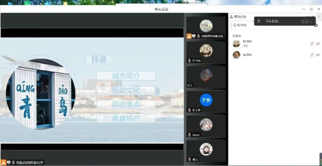 会议伊始,服务队负责人宣布会议的主题、核心内容和目的。先由一位队员对山东省的文化进行了总括宣讲,用PPT对山东省进行了详细的介绍。在会议中,各队员根据各自的实地调查与研究分别介绍各自独特的家乡文化。以青岛为例,从青岛的历史文化、人文风情、旅游景点、美食特产方面着手,全面的向参会成员宣传了青岛文化,重点介绍了青岛的海景风情和人文风土。此外,会议围绕如何更好的宣传家乡文化展开深入的讨论,通过头脑风暴的方式得出众多有效办法,其中最具可行性与有效性的是通过网络自媒体和短视频的方式宣传家乡文化。