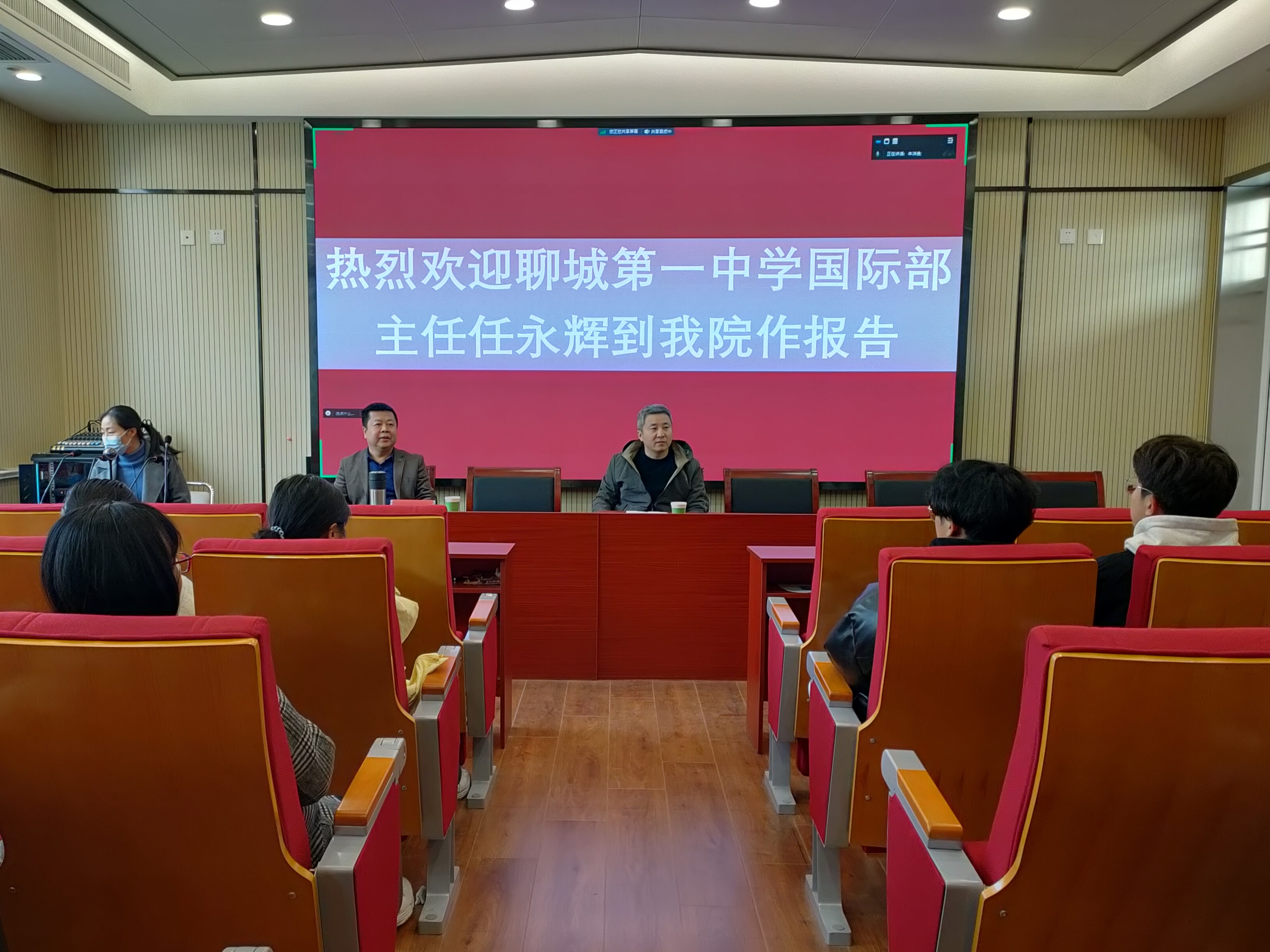 为引导员工个人成长,增强毕业生的学业规划意识,提高公司同学出国深造的概率,3月6日,mk体育于西1#C405开展“看世界、开视野、提能力、报国家”讲座。此次会议邀请了聊城一中国际部主任任永辉担任主讲、mk体育副经理秦洪庆主持、英语系主任牛洪垒及部分员工代表参加。