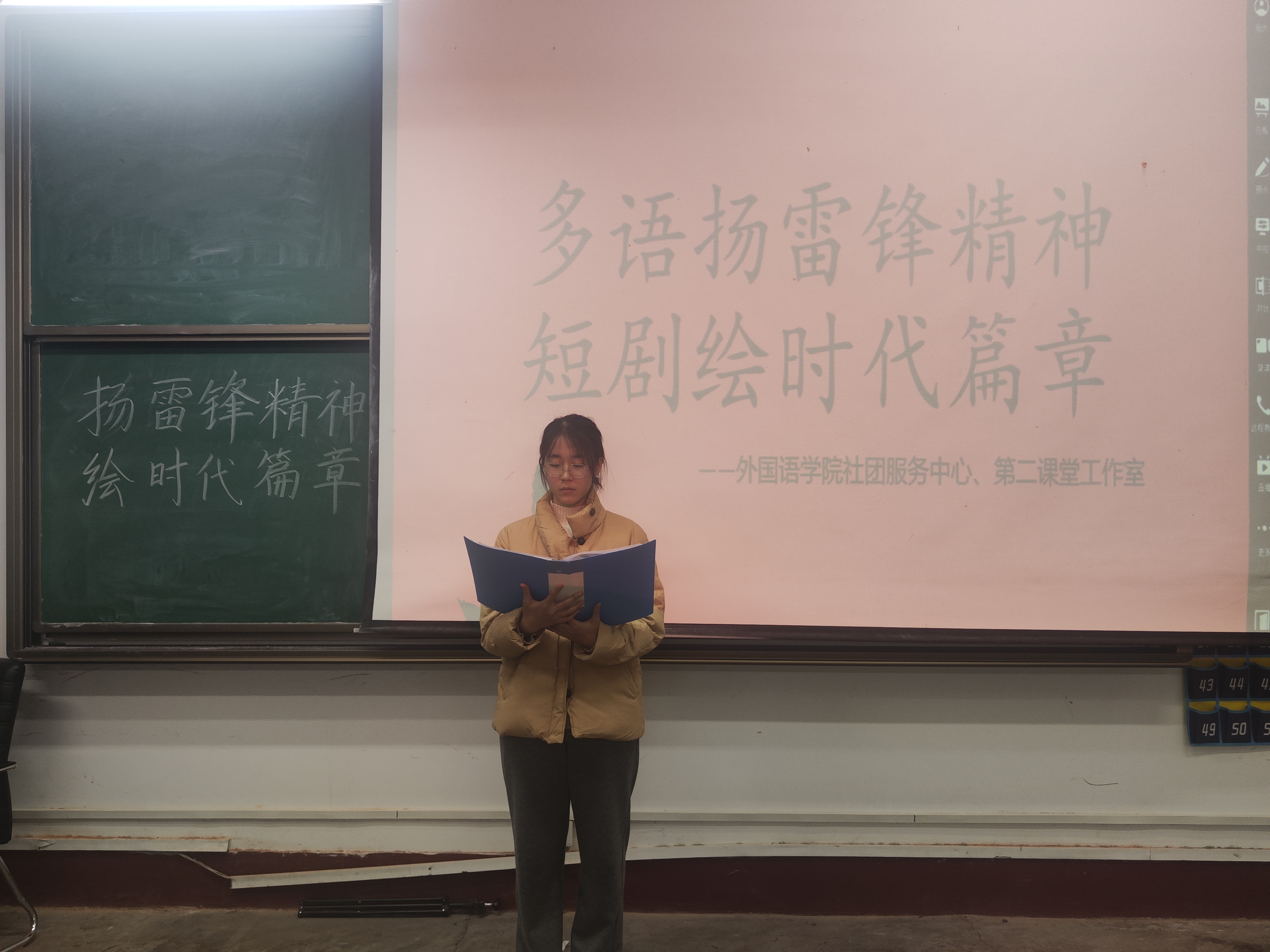 为了更好的传承雷锋精神,激发同学们的社会责任感,弘扬社会主义核心价值观,3月9日,由社团服务中心和第二课堂工作室联合策划的“多语扬雷锋精神,短剧绘时代篇章”活动于mk体育a112举办,通过多语言的演绎,用外语讲述雷锋的故事,展现mk体育风采,提高mk体育学子的语言表达能力。
