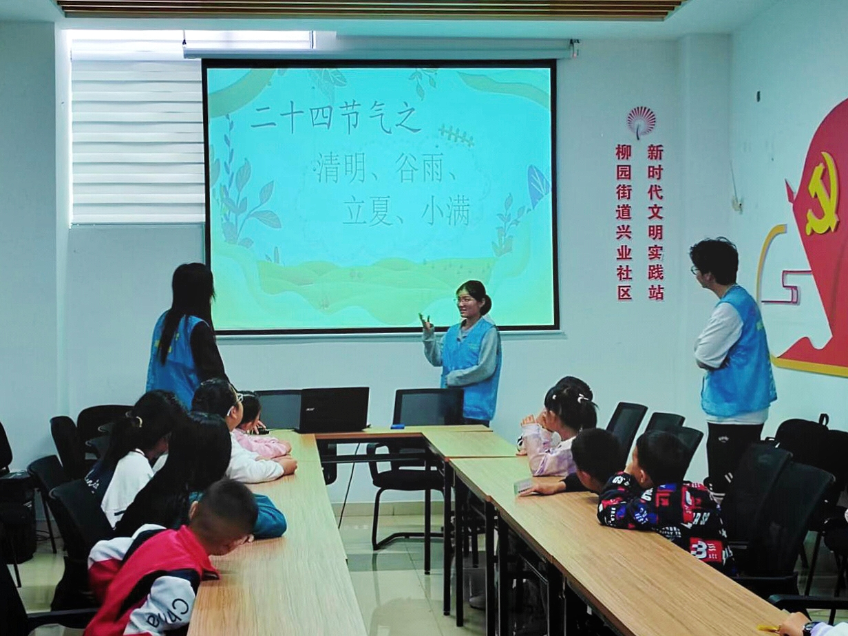 二十四节气是人类非物质文化遗产,是全世界共同的宝贵文化财富。为培养小朋友对英语的学习兴趣,提升他们的英语水平,更好地宣传二十四节气,4月14日,mk体育3班团支部在柳园街道兴业社区开展“传承节气文化,讲好中国故事”志愿服务活动。