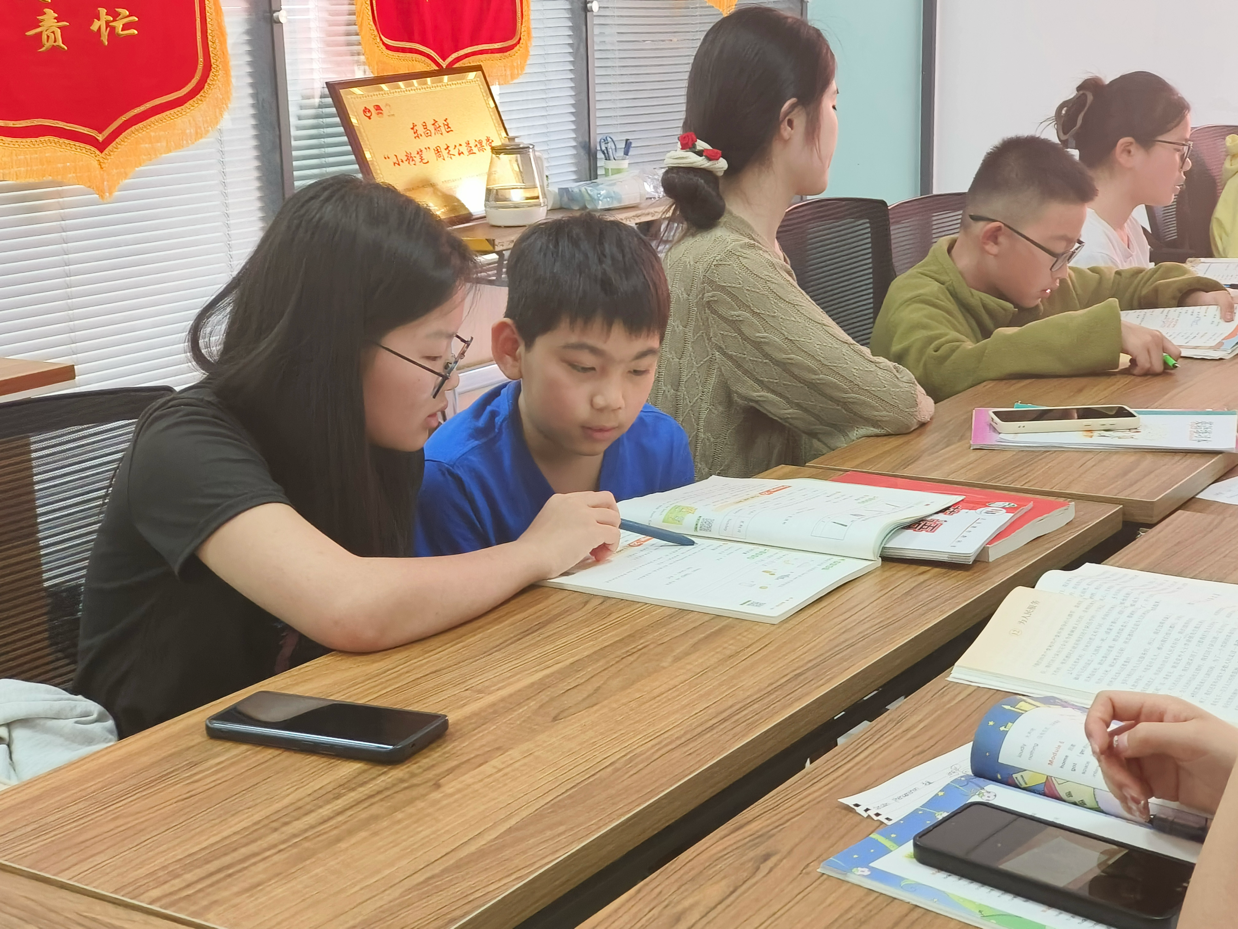 活动开始前,志愿者提前在聊大社区集合完成签到,小朋友基本到齐后,活动负责人进行点名,并按照提前分配好的任务进行一对一辅导教学。活动进行过程中,志愿者根据小朋友的情况采取作业辅导和预习复习相结合的方式对小朋友进行针对性的教学。在进行作业辅导时,志愿者用简单易理解的方式进行错题讲解,并出一些简单的变式题让小朋友们进行巩固练习。在进行预习与复习时,志愿者带领小朋友学习单词发音与拼读,理解记忆单词的意义,他们教给小朋友们英语单词的语音语调、单词拼读的方法以及语法知识的运用,让孩子们真切感受英语学习的魅力,提升孩子们英语学习的能力。在活动间隙,志愿者带着孩子们进行了成语接龙、古诗词背诵等益智小游戏,提高了小朋友们参与活动的积极性。活动最后,志愿者根据小朋友今天的学习内容和表现情况跟家长进行简单的反馈,让家长了解孩子的学习进度,形成有实践有反馈的闭环机制。至此,本次活动圆满结束。