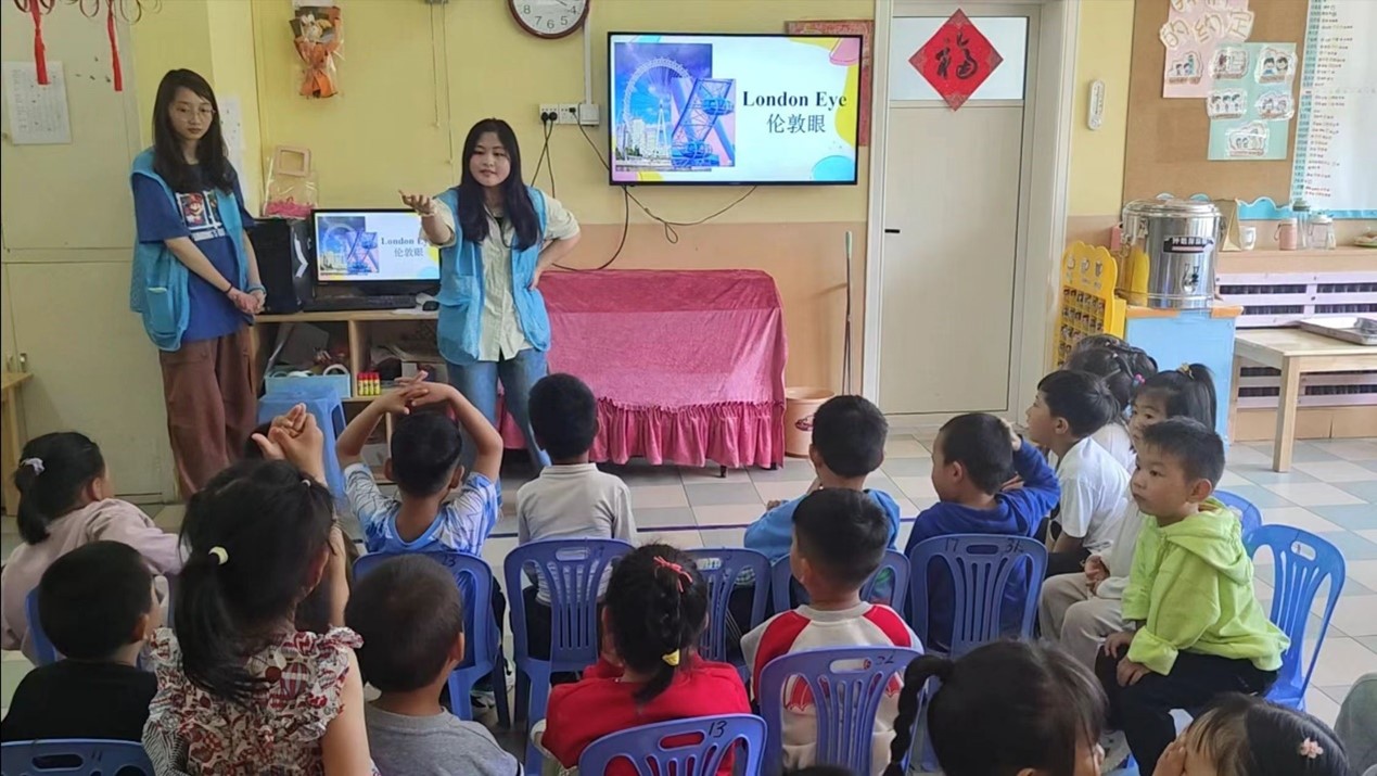 活动以一段介绍英国的视频作为开场,志愿者向小朋友提出:“英国国旗长什么样子?”和“英国的首都是哪里?”等问题,小朋友在认真思考后,积极举手回答。志愿者通过PPT展示了英国的一些著名地标,包括大本钟(Big Ben)、伦敦眼(London Eye)和伦敦桥(London Bridge),并为他们讲解了这些建筑物的特色和历史,带领大家进行了一次虚拟的英国之旅,感悟当地的风土人情。随后,志愿者组织小朋友进行了热烈的讨论,让其分享他们最喜欢的建筑物。在游戏环节中,志愿者精心设计了两种与英国建筑物相关的互动游戏,让小朋友在游戏中学习英语单词,加深对英国文化的印象。